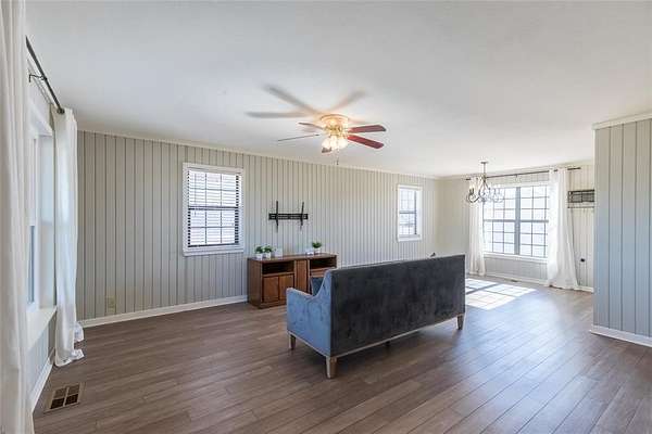 This property offers the privacy of country-style living while remaining conveniently located near top-rated schools, shopping, and amenities. So many updates have been made to this house, including new HVAC system, new plumbing, new roof, new windows, new siding, new front and side deck, new flooring, updated kitchen cabinets and backsplash.