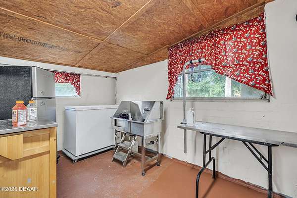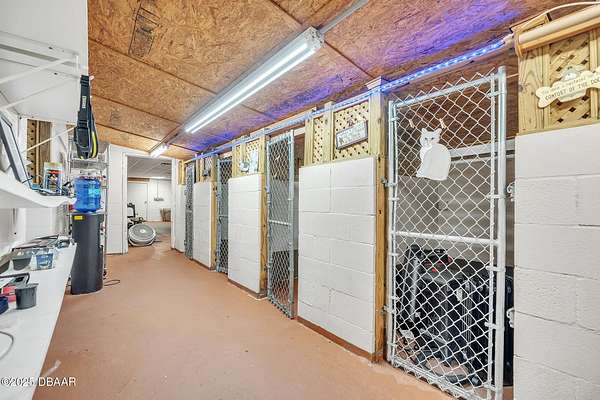 Unique Opportunity in Port Orange! This versatile property offers a spacious layout with features that make it truly stand out. The home includes a roundabout driveway for easy access and plenty of parking, plus a pond with its own pump system that channels water into the drainage ditch. Inside, you'll find comfort year-round with 3 new mini-split units providing efficient cooling and heating. Perfect for animal lovers or hobbyists, the property is equipped with 4 interior kennels and 10 exterior kennel slots, offering flexibility for a variety of uses. Please note: the Kubota does not convey with the sale. Centrally located in Port Orange, this home combines privacy, functionality, and convenience - a rare find in today's market!