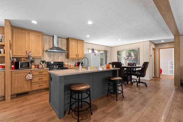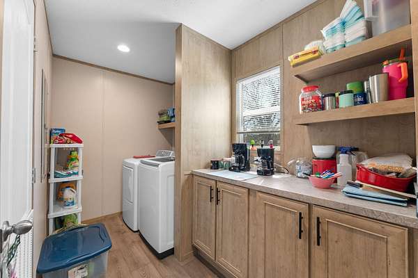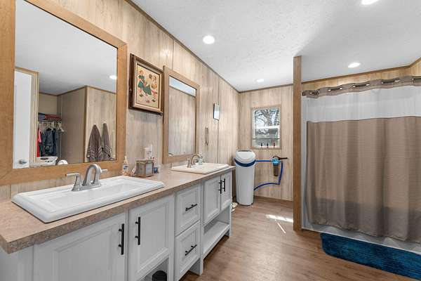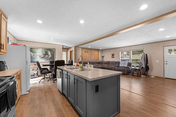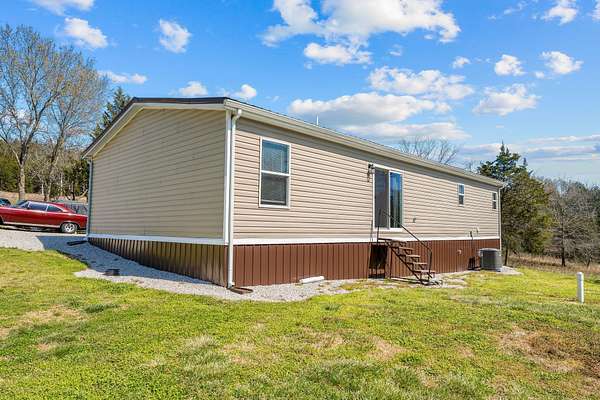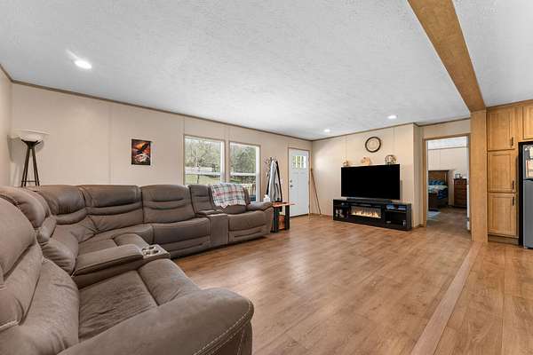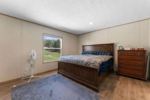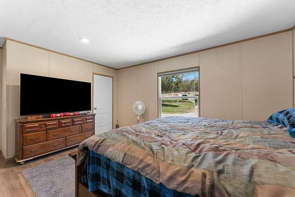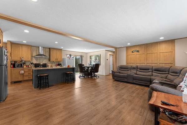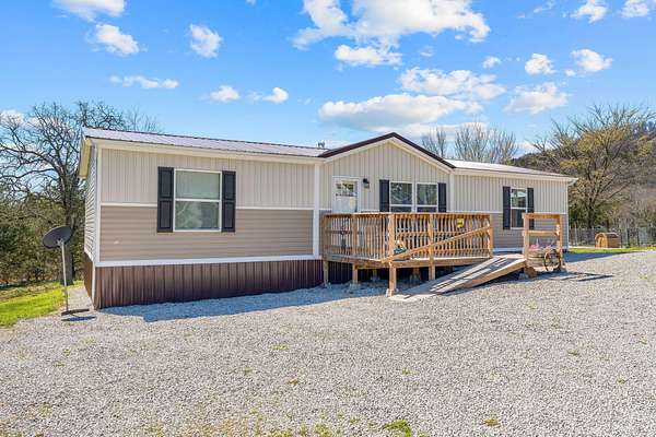 This stunning newer manufactured home offers the perfect blend of style, comfort, and convenience, nestled on just over 3 acres of peaceful landscape. This spacious property features 3 bedrooms and 2 bathrooms, designed with an open layout that seamlessly connects the kitchen, living room, and dining room. The modern accent wall in the living room adds a stylish touch, making it the perfect space for relaxation or entertaining guests. The kitchen is a chef's delight, boasting ample cabinet space, a bonus coffee bar, and a vast kitchen island complete with a sink and dishwasher - all designed to keep you connected to the fun in the living area. Each bedroom comes equipped with a generous walk-in closet, while the master suite offers not only a walk-in closet in the bedroom but also an additional walk-in closet conveniently located off the master bath.Enjoy the convenience of an outside door from the laundry room, providing easy access to the outdoors. The dining room features sliding glass doors, allowing natural sunlight to flood the space while offering beautiful views of the surrounding landscape.Located less than 10 minutes from town and just 5 minutes from a boat launch at the end of Highway H, this home is ideal for those who appreciate both tranquility and accessibility. Don't miss out on this incredible opportunity!