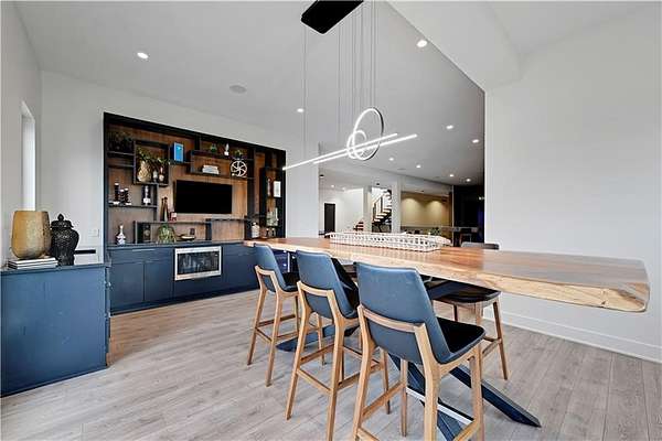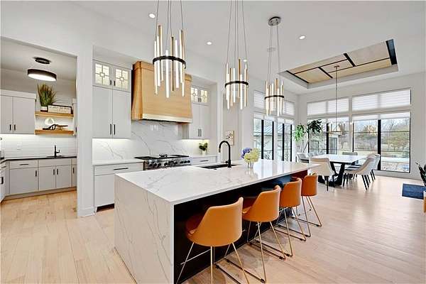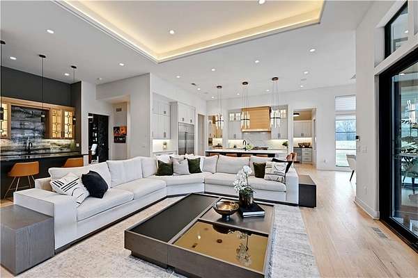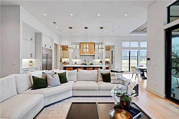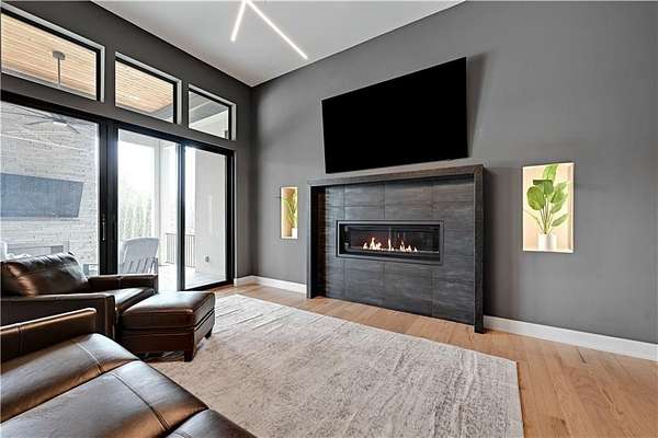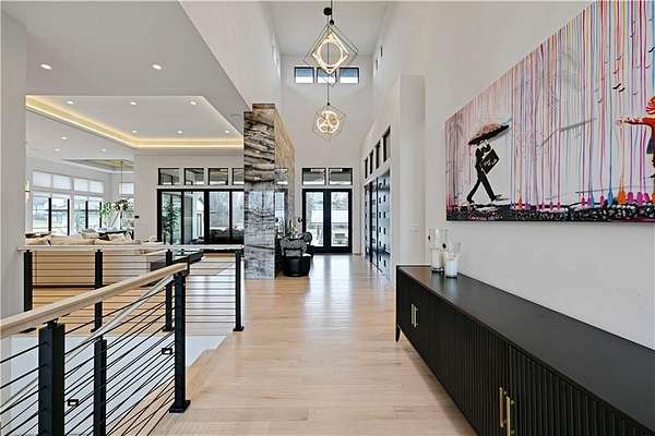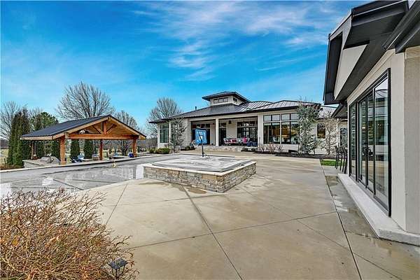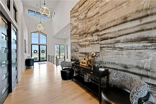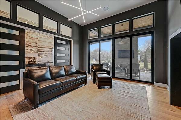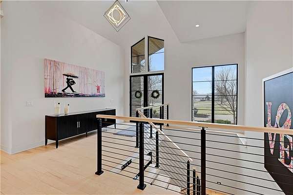 Take advantage of this RARE opportunity to own a luxurious custom Starr dream home! This bespoke gem is nestled on 2.95 acres on a private corner lot. This reverse 1.5 floor plan boasts soaring ceilings, wide planked wood floors and detailed cabinetry. The main level primary suite features grand windows with generous sitting area and access to the patio. Kitchen is a chefs delight with large granite island, Wolf sub-zero appliances, (featuring 60' wolf range) separate prep kitchen and open hearth room with fireplace. Work from home in the uniquely designed office or enjoy the tranquility on one of two covered spacious lanais. Lower level is an entertainers dream showcasing full golf simulator, sleek bar, second kitchen, large media area and wine display wall. Three lower level bedrooms with en-suite baths are perfect for kids or in-laws. Home is equipped with Crestron electronics that creates easy whole house lighting system, security, media, climate control and whole home speaker system. The captivating backyard oasis highlights a heated, gunite pool with sun ledge and electric cover as well as built in spa. This exterior is an entertainers DREAM! The newly built pool house has a full bedroom, full bath, kitchen area & bar to host or to just lounge around in! Escape to the outside lower level grill & bar area after a day at the pool! With fantastic sunset views, you can unwind in privacy nestled next to the fire pit or on the lanai, a true sanctuary feeling. This beauty is also wired for automatic shades and draperies throughout. Unmatched convenience with an oversized five-car garage - ample space for vehicles, hobbies and storage. Minutes away from shopping, restaurants, grocery and more. Award winning Olathe Schools. This opulent property will not last! This is more than a home; it's a lifestyle.