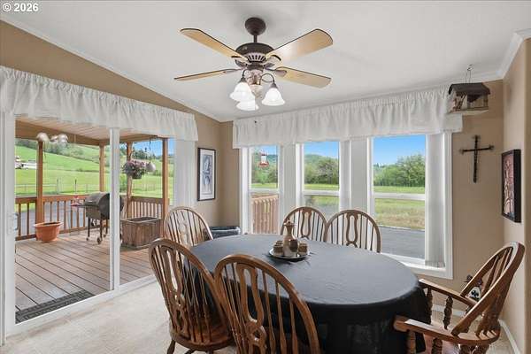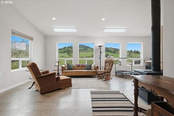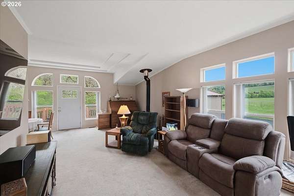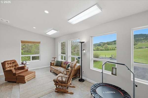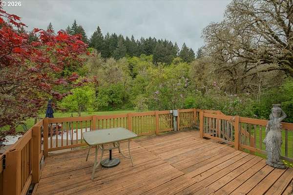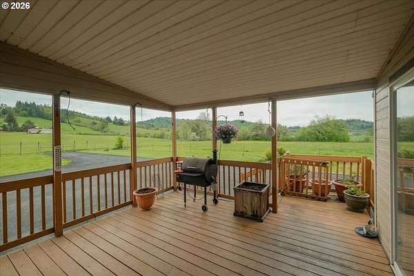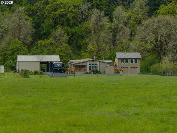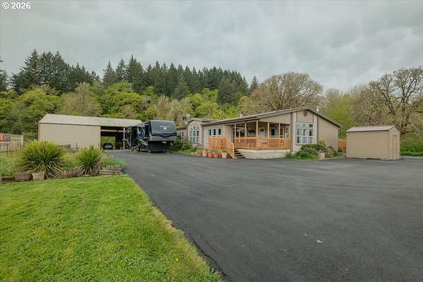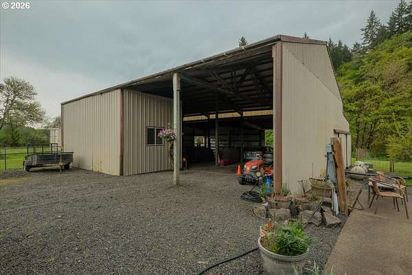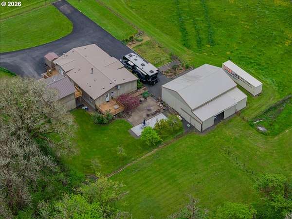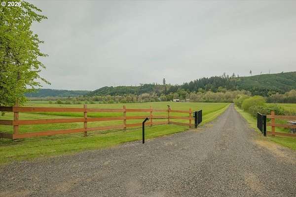 Just outside of McMinnville and directly across from Couer De Terre Vineyard, this 3-bedroom, 2.5-bath home sits on a rare and scenic nearly 28-acre parcel. The property offers a detached garage with a fully finished bonus room above-perfect for guests, an office, or studio-featuring stunning vineyard views. The barn is well-equipped with a tack room and offers flexibility for multiple stalls and runs, complemented by a shop and hay cover for added functionality. Ideal for accommodating livestock, gardening, or simply enjoying the surrounding scenery, this property offers endless possibilities. Set back behind a private gate and backing to forested land, the setting provides a unique combination of privacy and expansive views. Enjoy year-round outdoor living with covered decks and patios. Additional features include a full RV hookup with dedicated pad and EV charging capability. Conveniently located just 10 minutes to McMinnville and approximately one hour to both the Oregon Coast and Portland.