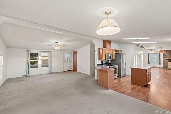 Fully fenced, move-in ready, and rich with rural charm — this 5-acre Calhan property offers everything you need to start your homestead or hobby farm today. Zoned for horses, cows, chickens, and more, the land is flat, usable, and ready for your dreams—whether that’s building an arena, expanding paddocks, or parking large vehicles and RVs. The small barn includes a tack/feed room and space that could easily be converted into multiple stalls, while the detached garage with an attached workshop is ideal for storage, projects, or equipment. The home has been freshly painted and features natural light throughout thanks to large windows and skylights, along with a fireplace for cozy evenings. The kitchen is built for entertaining with a large island, stainless steel appliances, and plenty of prep space. All appliances are included, making this a truly a move-in ready property. Step outside and enjoy apple and dark walnut trees, Front Range mountain views, and a peaceful country setting just 30–40 minutes from Colorado Springs. With multiple paddocks, cross-fencing, and open space to grow or customize, this property is a rare opportunity for those seeking both freedom and functionality.