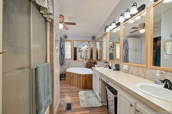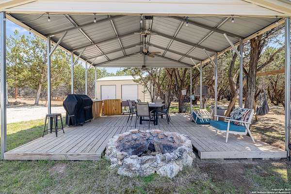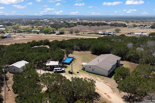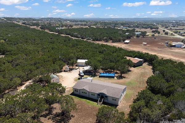 Escape to your own private oasis on this stunning 5-acre property in the heart of Bandera, Texas! Tucked away for ultimate privacy, this beautiful estate features two homes, making it perfect for multi-generational living, rental income, or hosting guests. The main house offers 3 bedrooms and 3 baths, with an inviting open floor plan, spacious kitchen, and plenty of natural light. Enjoy peaceful mornings on the covered porch, taking in the scenic Hill Country. A second home around 1600SF sits at the back of the property, featuring 3 bedrooms and 2 baths, ideal for extended family or an income-producing rental. Outdoor living is at its finest with an above-ground pool, a covered BBQ area, and plenty of space to entertain. The property also includes a shop with A/C, perfect for hobbies or a home business, as well as a two-car garage/shop for all your storage needs. If you're looking for privacy, space, and endless possibilities in Bandera, this unique property is a must-see!