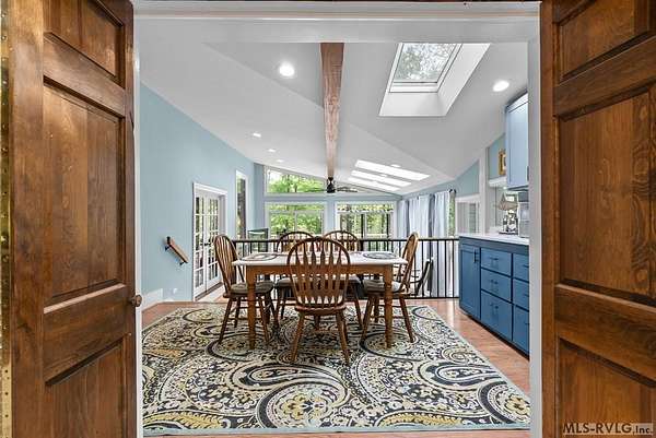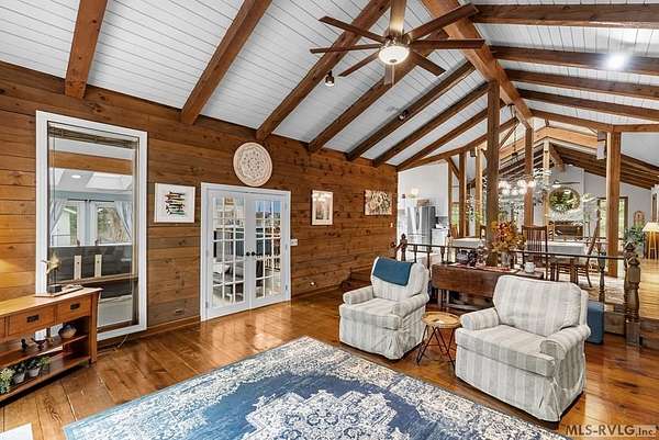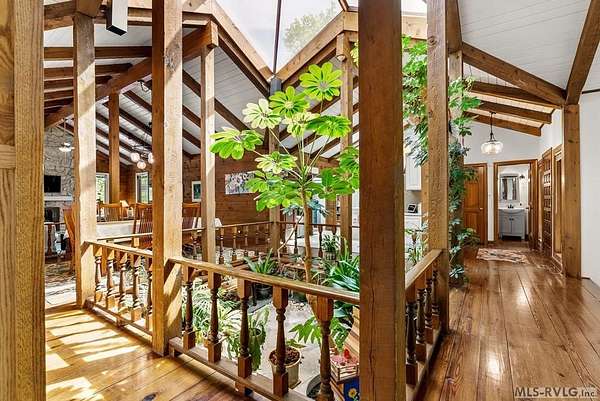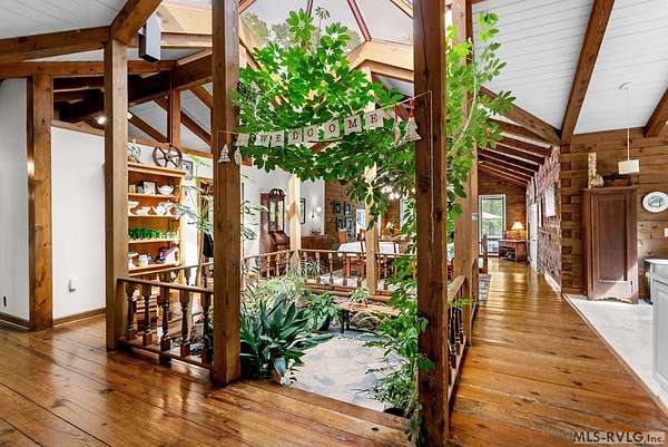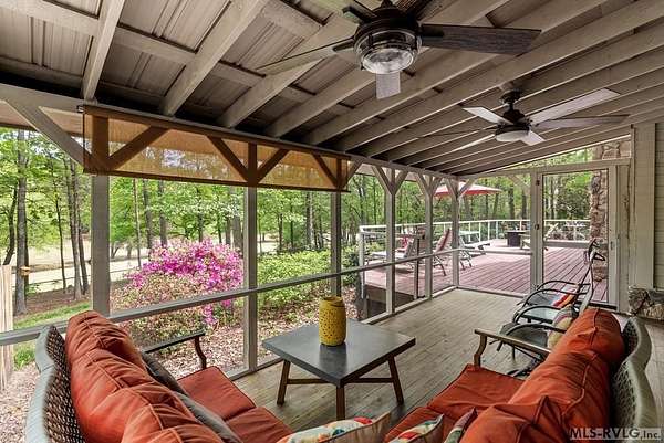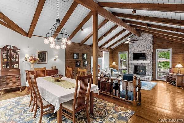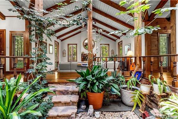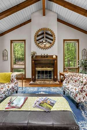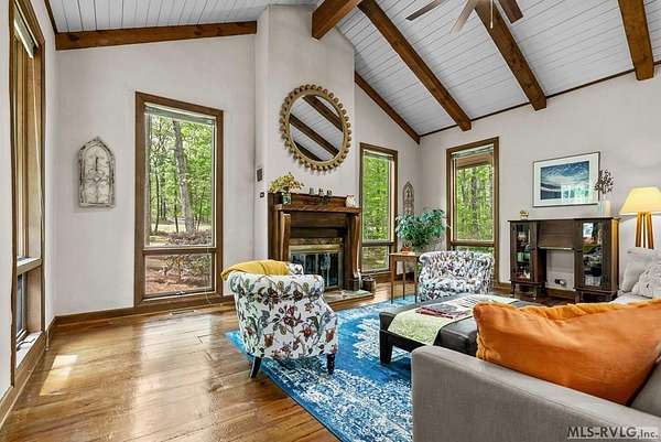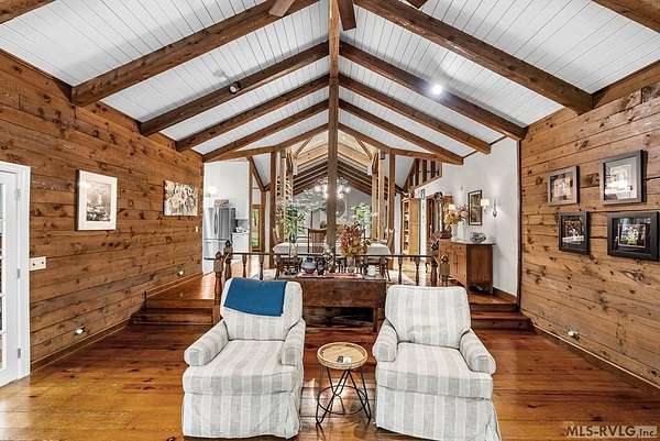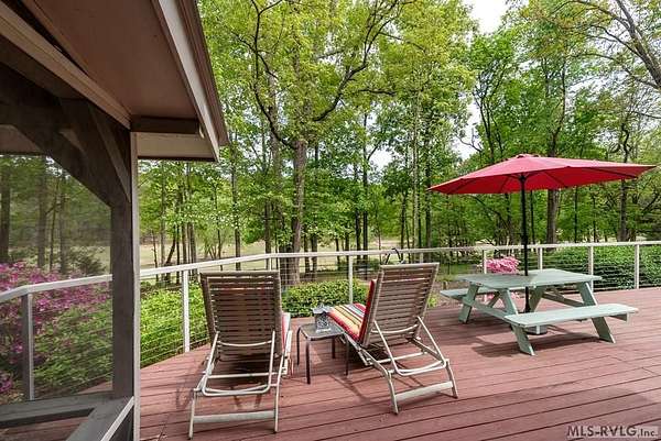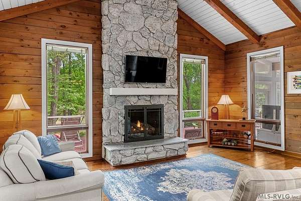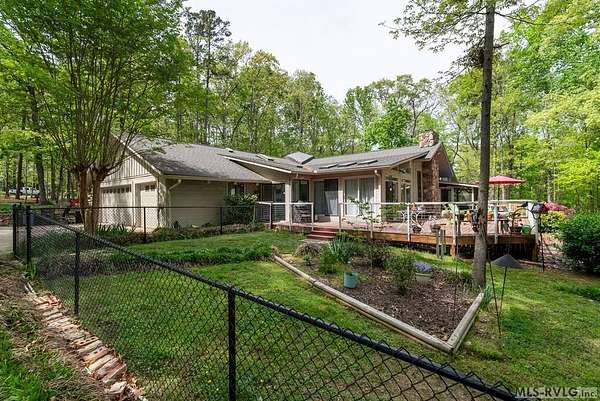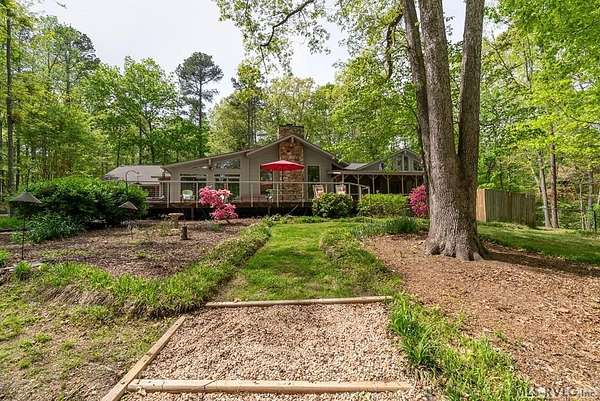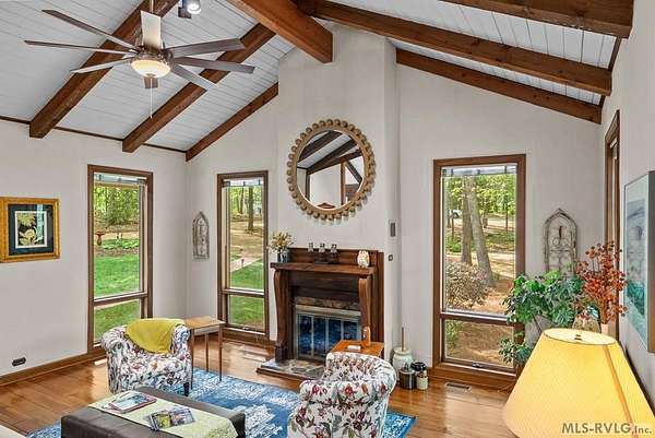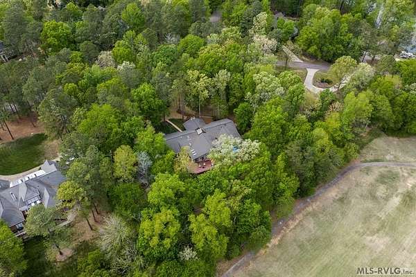 Modern Elegance Meets Views of Fairway #5! Discover a rare architectural gem tucked away on a secluded lot, where privacy meets the prestige of the Henderson Country Club. This stunning residence offers a sophisticated open-concept design defined by dramatic rough-cut beams and a breathtaking central atrium that serves as the heart of the home. A seamless blend of nature and design, natural light pours through the glass-walled sunroom, screened porch and extra-large deck providing front row seats to golf course views and nature. The interior strikes a perfect balance between rustic charm and modern luxury, featuring two cozy fireplaces and a layout that flows effortlessly from the gourmet-ready living spaces to the outdoors. Outdoor living at its finest - entertain with ease or enjoy quiet mornings on the screened porch and deck - both of which overlook the lush greenery of Fairway #5. The property is thoughtfully designed for every member of the family, including a specialized outdoor area for your dog and a stately circular drive for easy access and guest parking. Spacious Accommodations with 3 bedrooms, 3 full baths and 1 half bath, 2 offices for home business and/or home schooling. Secluded setting on this private, wooded lot that feels worlds away while remaining centrally located. Only 45 miles to RDU International Airport, making it an ideal retreat for those who travel or commute. You are minutes from top-tier medical facilities, local dining, not to mention, 10 minutes to Kerr Lake with 800 miles of shoreline! Arrange your private showing today.