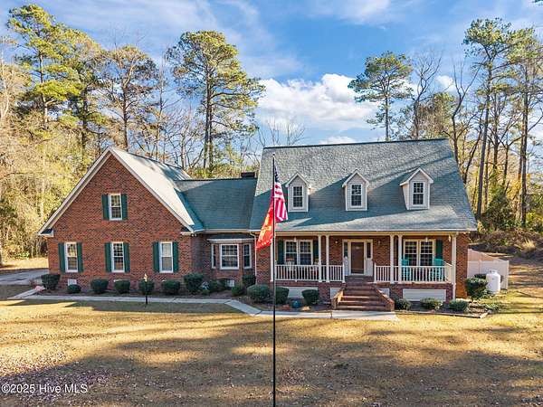 3 acres of end-of-the-road shaded privacy welcomes you to this classic brick cape home. The 1st floor owners suite with adjacent office space give way to the formal dining room, classic kitchen and luxurious living room under a sky-high ceiling highlighted with a true brick fireplace with gas logs to warm you on colder days. The enormous 4-bay garage will store all of your toys, or provide ample space for all of your projects. The back door opens to a peaceful covered porch overlooking the expansive backyard to view the bountiful natural beauty and wildlife. While the septic system was designed for 3 bedrooms, you will have a variety of bedroom choices upstairs with 3 large, but cozy rooms featuring traditional built-in bookcases surrounding the window seats. A large full bathroom supports these rooms, as well as the enormous finished bonus room over the garage, complete with a 2nd kitchen and separate stairway direct to the garage. This home has an abundance of life and love for its new owners. The price has been adjusted accordingly to assist with any updates, paint color changes or flooring updates that they may desire to personalize the home for themselves. The roof is believed to be approx 10 years old and the windows have been replaced and updated. Call today to schedule your own private viewing of this special place and see if it feels like YOUR place!