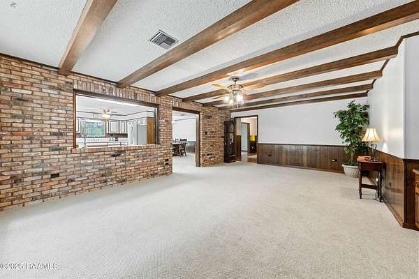 Welcome to a rare opportunity to own a spacious home along the scenic Bayou Teche in Arnaudville with a brand New Roof! Nestled on 3.44 beautifully shaded acres with hundred-year-old oak trees, this two-story home offers timeless Southern charm and incredible potential. Constructed with classic Old Chicago brick, the home features enduring quality and character throughout.Inside, you'll find warm center-match wood walls, a great room with a beamed ceiling that adds rustic charm, and a separate office or sitting room--perfect for working from home or unwinding in a quiet space. With 5 generously sized bedrooms, 2 full baths, and 2 half baths, the home offers flexibility for a variety of lifestyles. The oversized bedrooms offer ample space to spread out and personalize your area.Upstairs, you'll find a spacious bedroom or bonus room, featuring two large closets, built-in desks, and a spacious cedar closet--ideal for storage, a creative space, or a private retreat.While the home could benefit from some updates, it has been lovingly maintained and is move-in ready. Enjoy peaceful views of the bayou and the natural beauty that surrounds the property.Whether you're looking for room to grow, space to entertain, or simply a tranquil setting to call home, this unique property offers it all. Don't miss your chance to own a piece of Louisiana charm on the Bayou Teche! Schedule a showing today!