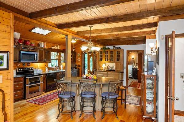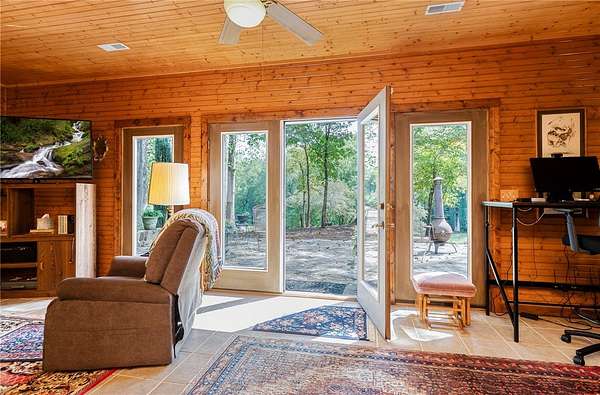 Step into serenity at 2111 Moorefield Memorial Highway, where peaceful mornings unfold in brilliant color and every window frames a view worth pausing for. Overlooking the 14th fairway of The Rock Golf Club & Resort, this home was designed to embrace both connection and calm-welcoming quiet reflection as easily as gatherings with family and friends. From the screened porch, watch the sunrise paint the sky in oranges, reds, and purples, and at night, let moonlight flood through the home's large picture windows. There's joy in watching golfers take their best shots, laughter on the patio during summer cookouts, and a deep calm when the breeze stirs through the trees. Built with 2x6 construction and thoughtful craftsmanship, this 5-bedroom, 3.5-bath home offers nearly 4,928 sqft of beautifully designed living space across two private lots totaling 1.59 acres. Whether you maintain the second lot as a wooded buffer, build an additional guest cottage, or create a second home, the possibilities are endless. Inside, vaulted wood ceilings and a stone fireplace and gorgeous hardwood floors define the great room, blending craftsmanship with comfort. The kitchen-complete with a center island, granite counters, and spacious pantry-opens seamlessly to the dining and living areas, ideal for entertaining. The main-level primary suite captures serene golf-course views and offers a private balcony, jetted tub, and walk-in closet. A second bedroom with adjoining bath, a half bath, and the laundry room complete the main floor. Upstairs, you'll find two additional bedrooms, one opening to a balcony-style loft overlooking the great room, highlighting the home's open, airy design. The lower level expands the living space with 9-foot ceilings, stunning views, and french doors that open to a spacious flagstone patio. Inside, you'll find a kitchenette, living area, bedroom with large sitting area, and bathroom-perfect for guests, adult children, or multi-generational living. Designed with independent access and versatility in mind, this level can serve as a private guest suite, long-term rental, or extended family quarters, offering both comfort and income potential. Outdoor living takes center stage with a stone terrace, covered porch, two decks, and a screened porch, all surrounded by lush greenery and fairway views. A large stream runs along the edge of the land, offering year-round sounds of flowing water-a tranquil backdrop for evenings on the porch or mornings with coffee in hand. Enjoy the privacy of a dead-end road, abundant storage, and a layout designed for both relaxation and recreation. Nestled just five minutes from Table Rock State Park and fifteen minutes from downtown Pickens, this home is ideally positioned for both convenience and adventure. Enjoy world-class hiking, fishing, and waterfall exploring throughout the Blue Ridge foothills, with Lake Jocassee, Lake Keowee, and countless scenic trails just minutes away. Clemson University and Furman University are both within an easy drive, offering cultural events, collegiate sports, and educational opportunities. Under an hour to Greenville and within comfortable reach of Atlanta, Charlotte, and the mountains of North Carolina, this location makes weekend getaways and spontaneous day trips a breeze. Whether it's kayaking at Lake Jocassee, browsing boutiques in Greenville, or enjoying live music in Clemson, every outing begins just beyond your doorstep. With nearby fire and EMS services, excellent schools, and a community known for its small-town Southern friendliness, you'll find the perfect balance of peace, comfort, and connection. It's a home built for connection, comfort, and calm-where each sunrise, each season, and even the sound of the stream brings new beauty.