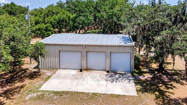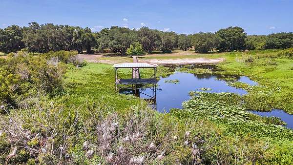 Welcome to your Old Florida paradise on the serene shores of Lake Kissimmee. 21113 Kissimmee Shores Rd is situated on 8+ acres offering 367 ft of water frontage, and seamlessly blends luxury, functionality, and the beauty of Florida's natural surroundings. The main residence boasts 3 spacious bedrooms, 2 full bathrooms, and 1 half bathroom, offering 4,378 square feet of elegant living space. Thoughtfully designed with both comfort and entertaining in mind, this home features with stunning lake views, high ceilings, and premium finishes throughout. For extended family or guests, the 2-bedroom, 2-bathroom guest house provides privacy and convenience, making it ideal for hosting visitors or creating an additional rental income stream. The 50x40 garage is a dream come true for car enthusiasts, hobbyists, or those needing extra storage space. It is complemented by RV hookups, making this property perfect for adventurers and travelers. Nature lovers will appreciate the property's prime lake frontage, offering endless opportunities for boating, fishing, and enjoying Florida's breathtaking sunsets. Additionally, with direct access to the 5930 acre Lake Kissimmee State Park, you'll have a private gateway to hiking, wildlife observation, and outdoor recreation. This rare gem perfectly combines luxury living with the tranquility of the great outdoors. Whether you're seeking a peaceful escape or a dynamic space for entertaining, this property truly has it all. Zoned Agricultural Residential Rural (ARR), this property allows for various uses, including single-family homes, farming, equestrian activities, and potential income streams like B&Bs, agri-tourism, or event venues.