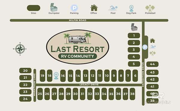 Welcome to Lot 32 in the Brand New Last Resort RV Community – Foley, Alabama. Enjoy comfort, convenience, and resort-style living at The Last Resort, a beautifully developed RV community in the heart of Foley. Lot 32 is a premium perimeter lot, offering added privacy with a wooded backdrop. Resort Amenities Include: Clubhouse & Welcome Center, Covered Pavilion for Gatherings, Bathhouse with Showers, Laundry Facility, Swimming Pool, Pickleball Court, Dog Park, Wi-Fi Access, Lush Landscaping with Lawn Maintenance Included. Prime Location: Situated on County Road 20 (Miflin Rd), this resort is minutes from some of South Baldwin’s most popular attractions: OWA Amusement Park & Tropical Falls Indoor Water Park, Gulf Shores Public Beach (under 10 miles away), Alabama Gulf Coast Zoo, Tanger Outlets Mall, The Wharf Marina – featuring dining, shopping, Ferris wheel, laser light shows, and family events, Dozens of local restaurants, scenic parks, and outdoor activities nearby. HOA: $250/month – Covers: Association Management, Lawn Maintenance & Landscaping, Pool Upkeep & Pest Control, Termite & Common Area Services, Water, Sewer, Waste Collection, Internet, Insurance and Custodial Services for Common Areas. Each lot includes an individual electric meter. A designated on-site rental management company is available for owners wishing to rent their site. Don’t miss your chance to own in Foley’s newest and most exciting RV resort! Buyer to verify all information during due diligence.