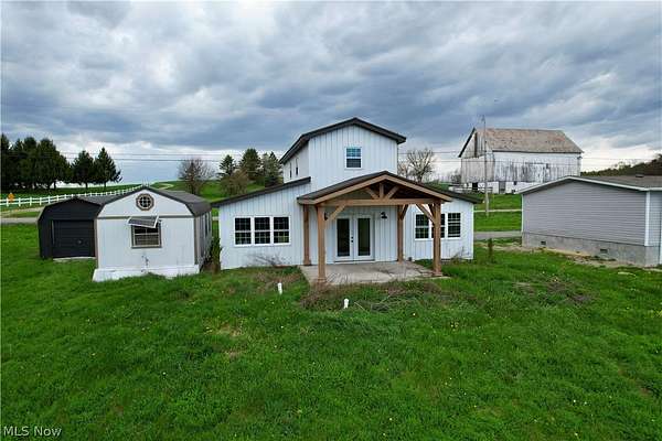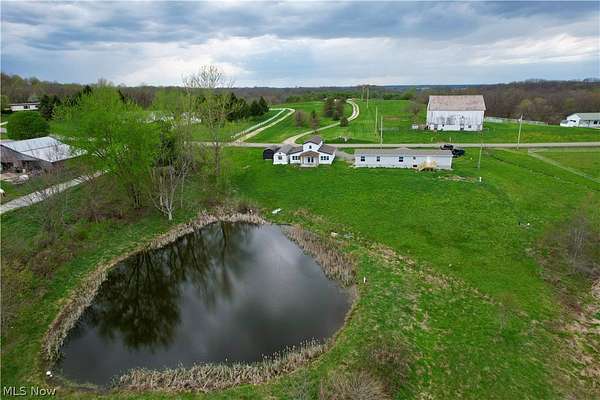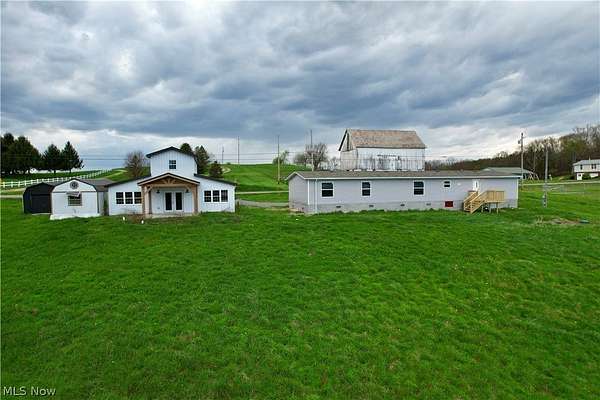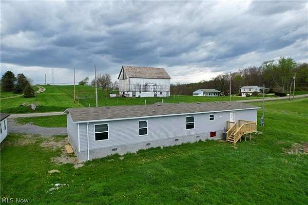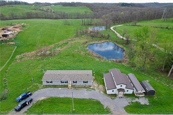 Spacious and inviting, this 5-bedroom, 3 full bath manufactured home sits on nearly 6 scenic acres in a peaceful country setting, complete with a pond and gorgeous views in every direction. This newer home offers an open-concept floor plan, generously sized bedrooms, and oversized closets, providing plenty of space for comfortable living. Recent updates include new front and back steps and a professionally installed foundation, adding both value and peace of mind. The home features electric heat, central air, a 200-amp electrical service, and a newer well and septic system. All appliances convey, making this property truly move-in ready. Outside, you'll find a large driveway with ample parking, along with multiple outbuildings for added versatility. A standout feature is the impressive barn-style structure, complete with a back porch showcasing a stunning timber frame cathedral ceiling-an ideal spot to relax and take in peaceful views of the pond. This versatile space is perfect for a workshop, recreation area, or hobby retreat, along with two additional large storage sheds. With endless potential and room to make it your own, this property offers the perfect blend of space, functionality, and rural charm. Schedule your private showing today!