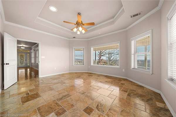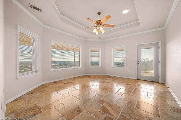 Absolute Auction 03/18/2026 at 11:00 AM Custom-built home offered on over 4 acres in Van Buren, selling regardless of price. This spacious 3,283 square foot residence features 3 bedrooms and 2.5 bathrooms with a versatile floor plan designed for comfort and functionality. The home includes a dedicated office, an additional family room, and generous living areas ideal for both everyday living and entertaining. An interior above-ground storm shelter provides added peace of mind. Property improvements include an oversized 2-car attached garage plus an additional detached 2-car garage/shop, offering excellent storage and workspace options. Energy efficiency is enhanced with a geothermal HVAC system. The acreage provides privacy and room to enjoy the outdoors while remaining conveniently located to town amenities. Two additional residential lots will be offered separately. A rare opportunity to purchase a well-built home with land-selling regardless of price.