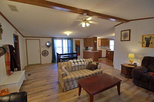 Check out this OPEN floorplan 3 br. 2 bath home on a perfect 2.54 acre lot located just 10 mins to the town of Appomattox with FIREFLY fiber optic internet. This property has a very nice flat yard with a large storage shed and a fenced backyard. The rest of the land is mix of hardwoods offering privacy all around. The home just had vinyl plank flooring installed in the living and dining areas. The kitchen offers ample cabinet & countertop space plus there is a large pantry in the laundry room. The main bedroom has a private bath with a walk in closet and a garden tub. This is a Palm Harbor brand manufactured home. Palm Harbor is known for superior construction in the manufactured home industry with 3/4 osb subflooring and 2x4 walls. Call today to take a look!