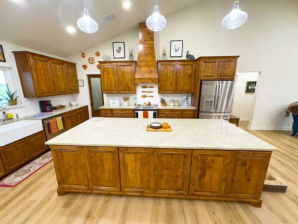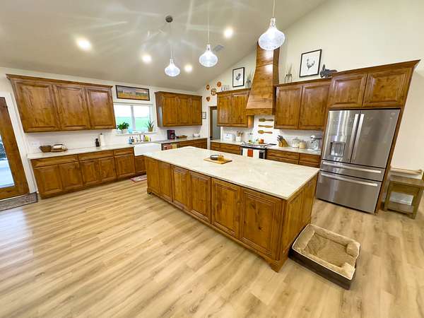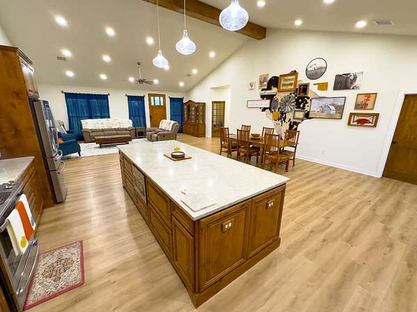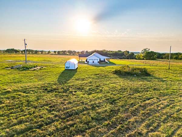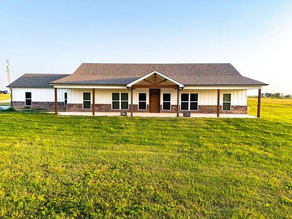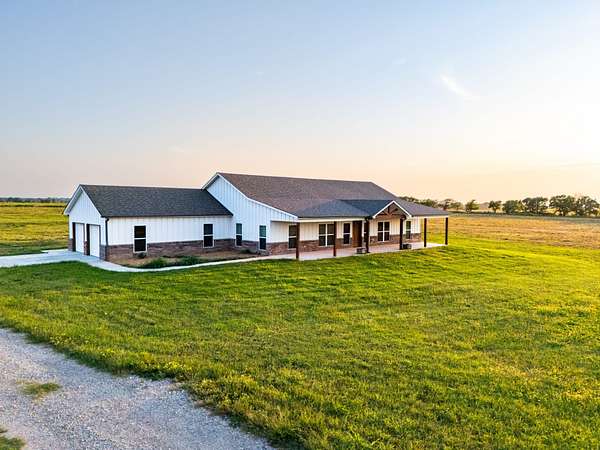 Located in Nowata County, this 80 +- acre property combines modern living with ranch functionality, offering both a beautiful new 2400 +/- sq ft home and productive pastureland. Built in 2023, the 3-bedroom, 2.5-bath home includes a study and features an open floor plan with a spacious kitchen and living room. Hardwood floors highlight the kitchen and living areas, while tile accents the bathrooms and carpet adds comfort in the bedrooms. The kitchen is equipped with custom wooden cabinetry, a pantry, and a large island, while a generous laundry room adds convenience. Attached to the home is a 700 +- sq ft two-car garage. Beyond the home, the property is set up for both work and recreation. A climate-controlled shed with electricity provides a versatile space for projects or storage, while a large shop with front and back roll-up doors is ideal for equipment or workshop use. The land is fully fenced with cross fencing, designed for cattle or other livestock, and includes cattle pens that will convey. Two ponds provide ample water, with the southern pond stocked for fishing. The balance of the acreage is open pastureland, offering strong grazing opportunities and plenty of space for livestock management. With road access on two sides, the layout ensures easy entry and utility. Just a few miles from Oologah Lake and conveniently located 20 +/- minutes from Nowata, 30 +- minutes from Claremore and Vinita, 50 +- minutes from Bartlesville, and 1 hour from the Tulsa International Airport, this property blends accessibility with rural charm. Whether you're looking for a modern homestead, a working ranch, or both, this tract is ready to meet your needs for years to come! All showings are by appointment only. If you would like more information or would like to schedule a private viewing please contact Chuck Bellatti at (918)859-2412.