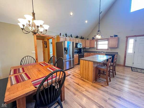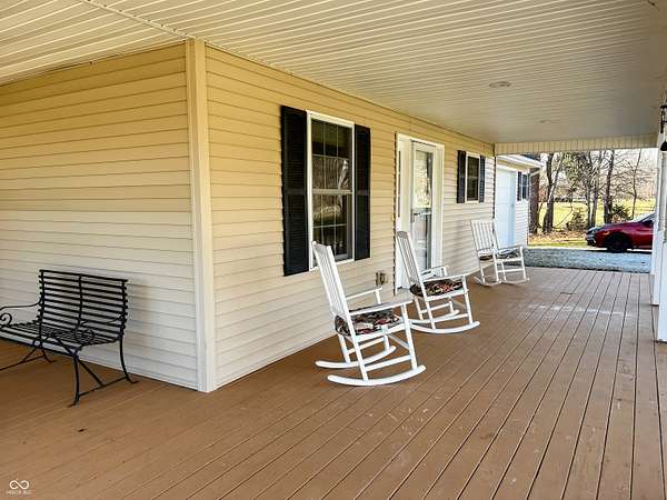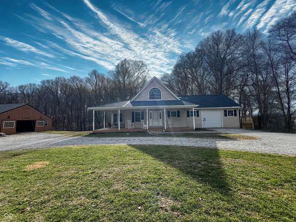 Welcome to the perfect blend of privacy, space, and convenience! This beautiful 3 bedroom, 2 bath home offers an inviting open floor plan designed for both everyday living and entertaining. A standout feature is the sun-filled 4 seasons room, providing year round enjoyment while overlooking your peaceful acreage and soaking in the scenery. The spacious primary suite delivers comfort and retreat, while the full basement with an egress window is a blank canvas ready for the next owner's vision. Outside, enjoy the charm of a wrap-around front porch, perfect for rocking chairs and quiet moments. The property spans 7 scenic acres, including 4+ wooded acres, offering privacy, wildlife, and endless outdoor possibilities. A horse barn adds incredible versatility for equestrian use, hobbies, or storage. Located just outside Oldenburg and minutes from Batesville, this home truly delivers location, location, location-country living with convenient access to town, schools, and amenities.