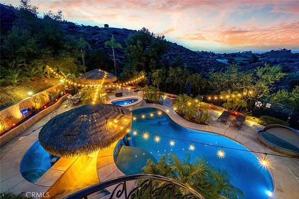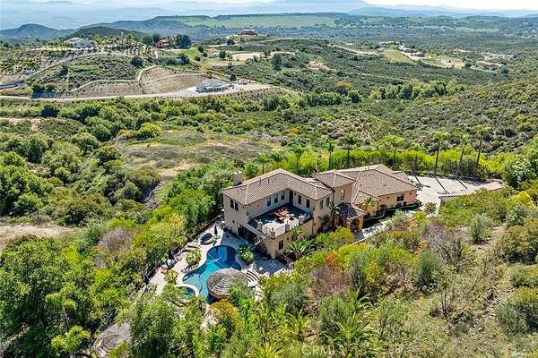 PRIVACY, LUXURY & ENERGY EFFICIENCY ON 10 ACRES WITH NO HOA! ABSOLUTELY TURNKEY RESORT-STYLE ESTATE WITH AMAZING VIEWS ON THE SANTA ROSA PLATEAU! $100s of thousands invested in new solar, massive battery-back up & whole-house generator, providing security, connectivity & controlled cost of living. Extreme privacy from the moment you enter this one-of-a-kind custom estate located in a convenient, tranquil location adjacent to La Cresta, in a small carved-out area with NO HOA. The custom iron entry gate, peaceful waterfall, long driveway, and extensive landscaping greet you, leading you to the large, beautifully finished 4-car detached garage, dramatic Mediterranean-inspired estate with a pool and an entertainment backyard that you must see to believe! The acreage adjacent to the home has a separate driveway, stairs, walls, fruit orchard, and is ready for whatever you want to build. Inside the home, find 8-ft solid wood doors, hand-troweled walls, Fiber Optic Internet Service (FIOS) wifi, surround sound, security system, custom shutters, and opening to the family room, the epic chefs' kitchen with Viking appliances, 4 ovens, cooktop with griddle & pot filler, 2 sinks, 2 dishwashers, large eat-in island and adjacent well-equipped walk-in butler's pantry. The Primary Suite and 2 additional ensuite bedrooms PLUS OFFICE are downstairs, with 2 additional ensuite bedrooms and large viewing deck upstairs. The backyard amenities include pool with 'Lazy River', 11 swim-up seats, sunken bar, 3 fridges, ice maker, dining counters, 2 TVs, sink, 52" BBQ, palapa, horse-shoe pit and city-lights & Nature Reserve views. The interior/exterior audio system tops off the resort experience! Just bring your toothbrush! THIS CLOSE-TO-TOWN ESTATE IS TURNKEY LUXURY! *Discover the Santa Rosa Plateau Lifestyle...5-acre minimum parcels (10-acre minimum. in SR West), just minutes to schools, restaurants, hospitals, grocery stores, 15 Fwy & Temecula Wine Country. Enjoy this peaceful ranch community w/no commercial businesses, robust social activities, miles of private community trails & 1000s of acres of Ecological Reserve...All less than 1.5 hours from LA, SD, OC, Palm Springs & Big Bear. Discover the country, yet convenient, lifestyle of La Cresta, Tenaja & the Communities of the Santa Rosa Plateau!