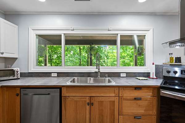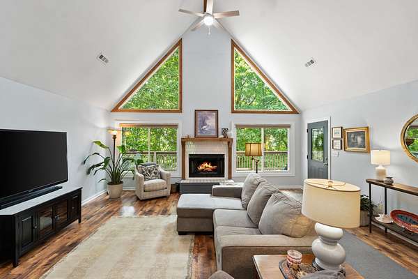 Surrounded by 8.8 acres of hardwood forest, this two-bedroom, two-bath cabin is a haven for outdoor lovers, artists, or anyone craving peace.