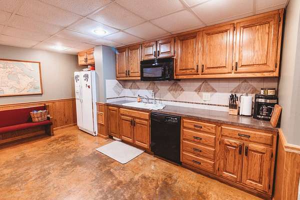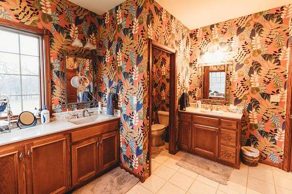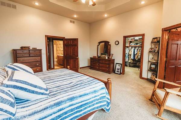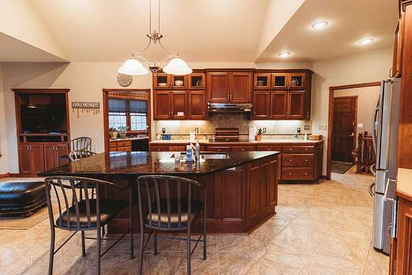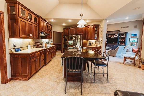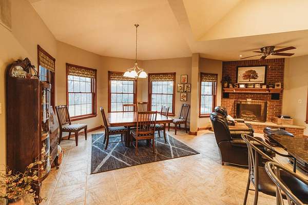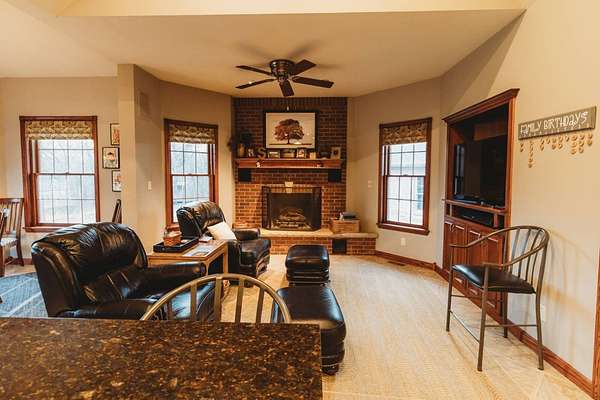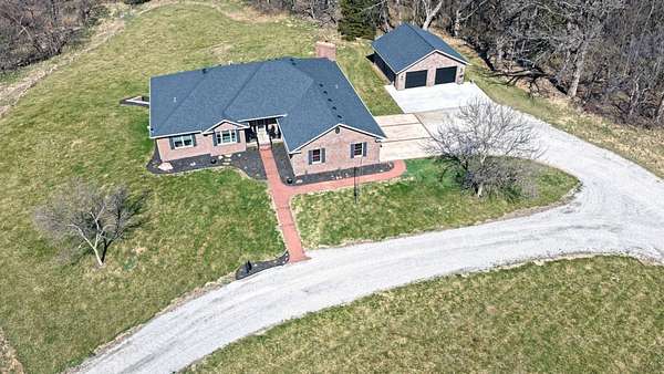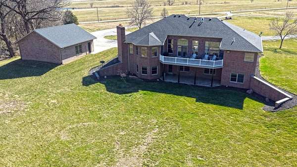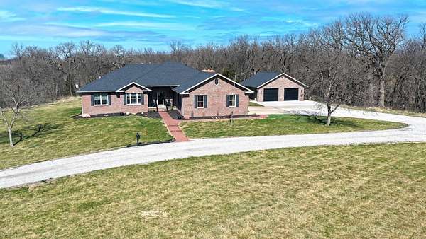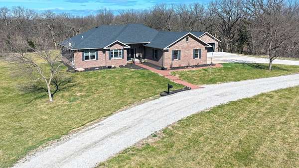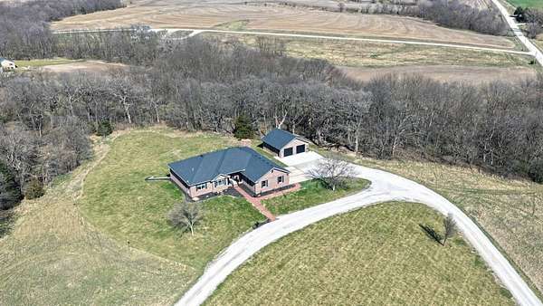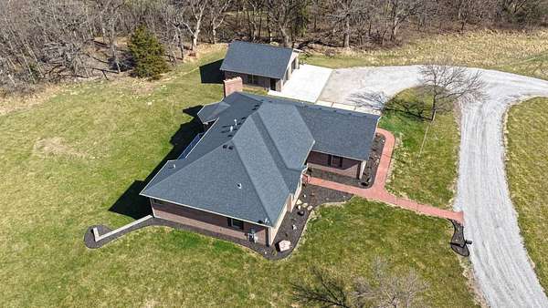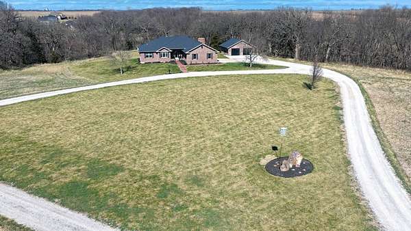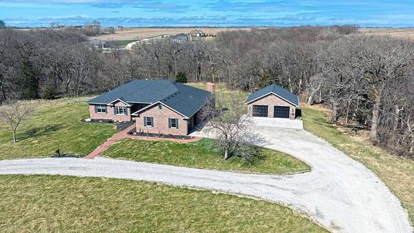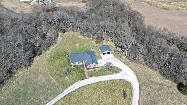 Just minutes from Sabetha, this 4,300+ sq ft all-brick home offers space, privacy, and versatility with 5 bedrooms, heated basement floors, dual garages, and nearly 12.5-acres in a wooded setting. --- Built in 2002, this all-brick home with both attached and detached garages reflects quality craftsmanship throughout. Offering over 4,300 square feet of finished living space, including more than 2,600 square feet on the main level and a fully finished walkout basement. --- The main level includes three bedrooms and two full bathrooms, highlighted by a spacious primary suite featuring a large walk-in closet and a well-appointed bathroom with a walk-in tile shower. The kitchen serves as the centerpiece of the home with rich wood cabinetry, an oversized island with sink, refrigerator, dishwasher, double ovens, in-counter stovetop, vent hood, and walk-in pantry. A fireplace with gas starter adds warmth to the living area, while a dedicated office with built-ins and a convenient laundry room with half bath enhance functionality. --- The walkout basement offers additional versatility with heated floors, a large living area, a second fireplace with gas starter, and secondary kitchen complete with cabinetry, refrigerator, sink, dishwasher, and microwave. Two additional bedrooms and a full bathroom make this space ideal for guests, extended living, or entertaining. Direct access to the lower-level patio complements the main-level deck, both overlooking the peaceful, tree-lined setting. --- Additional features include high ceilings, detailed wood trim, central vac system, water softener, and central heating and cooling with humidifier. The exterior includes a circle drive, an attached two-car garage (870 sq ft), and a detached two-car garage (900 sq ft) built in 2023. --- The landscaped grounds are surrounded by mature trees on the south side, providing exceptional privacy and frequent wildlife sightings. High-speed internet is available, offering modern connectivity in a rural setting. --- Recent updates include a new roof in 2024, septic system service completed in 2024, new water heater in 2022, and new detached garage in 2023. --- With significantly more acreage than surrounding properties in this subdivision and strong neighboring values, this is an opportunity to own a spacious estate in a highly desirable location.