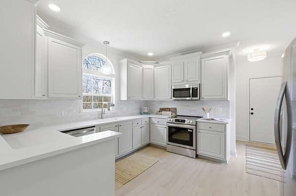 Beautifully renovated home on a quiet cul-de-sac sitting on 2.3 acres! Very private lot that backs up to a wooded tree line- Open floor plan with a fireplace and lots of natural lighting, 3 bedrooms on the main floor including the master. High end finishes throughout with all new luxury LVP flooring, custom master closet shelving, quartz kitchen countertops, HVAC and ductwork, tile, inside/outside paint, lighting/plumbing fixtures & vanities, gutters, Frigidaire stainless steel appliances, water heater, and much more. No HOA and a two car garage with plenty of parking- welcome home!