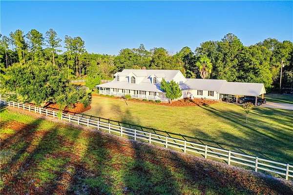 Escape to country living and your own personal paradise on 76 Acres with Spacious 4 BR/5BA Country Estate. Welcome to your dream retreat - an outdoorsman's paradise offering the perfect blend of luxury, comfort, and adventure. Nestled on 76 breathtaking acres, this approx 3500 sq ft custom home features 4 bedrooms and 5 full baths, designed for both family living and entertaining. With regard to the property - this exceptional estate is an outdoorsman's haven, and is ideal for quail hunts, dove shoots and has abundant deer and wildlife frequently captured on trail cameras. Explore riding and ATV trails that wind through the property, providing access to all corners of this scenic land. For the horse or livestock owner, the property includes an approx 10-acre fenced pasture, a livestock pond, and barn featuring 4 concrete stalls and a tack room. There's also a large workshop that provides ample space for hobbies, equipment, or storage. Property underwent a plantation cut in Spring of 2021. Landowner has implemented rotational controlled burns, slowly converting the property into the old southern plantation landscape where mature pines and live oaks abound, making it an ideal habitat for whitetail deer and bobwhite quail.