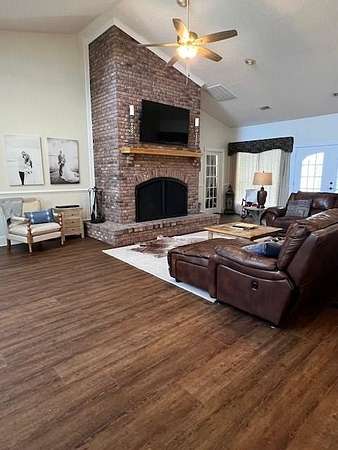 The home itself has an inviting wraparound porch that welcomes you into a spacious living room showcasing soaring ceilings and an amazingly oversized wood-burning fireplace as the focal point. The large kitchen is perfect for gatherings, offering ample cabinetry, a center island, appliances to include a gas range, double ovens, refrigerator and dishwasher as well as an eat-in bar and pantry. The breakfast area overlooks the serene landscape, while an adjacent flex room makes an ideal home office, craft room or playroom...Formal dining room. The primary suite features a walk-in closet and an ensuite bath with dual vanities, jacuzzi tub and a separate shower. A private flex room off the master bedroom offers space for a den, study or nursery. Each additional bedroom includes its own private bath - a rare find for ultimate comfort and privacy. Other highlights include a spacious game room/great room that is perfect for entertaining or displaying trophy mounts. Large laundry room with add'l guest bath. Enjoy access from the breakfast area as well as the living room and trophy room the back screened porch, which overlooks your private oasis - an inground concrete pool (chlorine) with hot tub spa and cool deck patio, perfect for relaxing or entertaining. This home/property is also located in the highly desirable Patterson Elementary School District, previously ranked among the top 50 schools.
