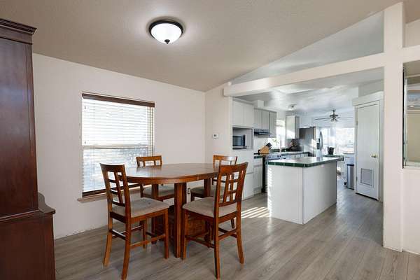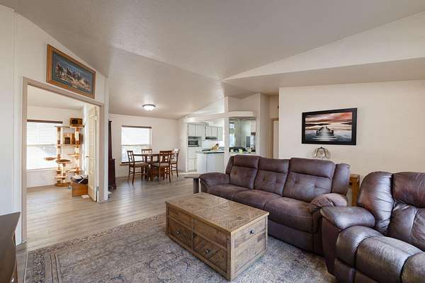 Enjoy peaceful country living on 2.33 acres with stunning mountain views. This manufactured home offers a functional layout filled with natural light and plenty of opportunity to make it your own. Take in the scenery from the spacious back deck, perfect for relaxing or entertaining. The front yard features established fruit trees and garden beds, creating a welcoming outdoor space. The expansive property offers ample room for animals, gardening, or simply enjoying the open air. A detached garage/shop provides excellent storage and workspace for hobbies, equipment, or projects, along with an additional storage shed. With wide-open space, privacy, and scenic surroundings, this property delivers a rare blend of utility, views, and country charm.