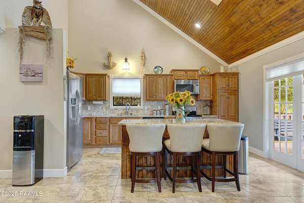 Discover your dream retreat in the heart of Cajun Country! This beautiful 3 bedroom, 2.5 bath home is nestled on the scenic Atchafalaya Basin in Butte LaRose--offering peaceful waterfront views from the expansive covered porch and world-class fishing just steps from the door. Situated on 1.86 acres, this is a special property featuring cedar wood siding, vaulted cedar wood ceilings in the expansive living space, a beautiful paved courtyard, and a picturesque wooden pier overlooking the river. The primary suite, located downstairs includes a spacious en-suite bathroom with separate bathtub & shower, dual vanities, and dual closets. The second floor offers a loft space along with two generously sized bedrooms and a full bathroom. Other features include a spacious open-concept living/kitchen area, a large kitchen island with granite countertop, plenty of cabinet space, separate laundry room, outdoor shower, outdoor kitchen with gas cooktop & full size sink. Located just minutes from I-10, you're close to Lafayette and Baton Rouge, but a world away from the hustle and bustle. If you're ready to enjoy life on the water in one of Louisiana's best-kept secrets, this Butte LaRose camp is waiting for you!