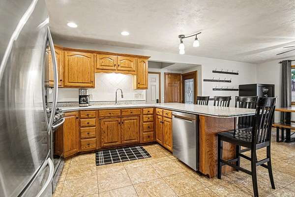 - Breakfast Bar, Ceiling Fan(s), Countertops-Solid Surf, Custom Cabinetry, Dishwasher, Dryer Hook Up Gas/Elec, Firepit, Garage Door Opener, Garage Utilities, Generator Ready, Patio Open, Range-Gas, Refrigerator, Sump Pump, Washer Hook-Up, Water Heater Gas, Water Softener-Owned, Workshop
