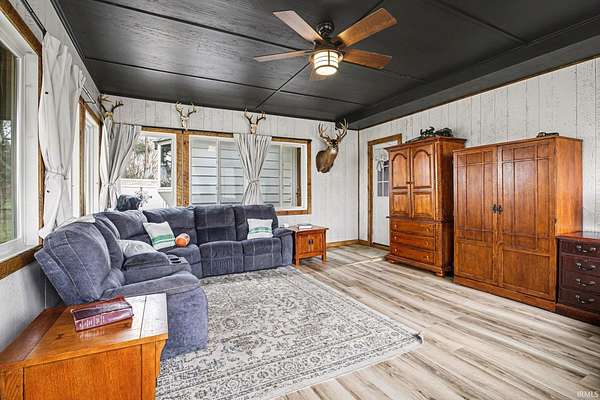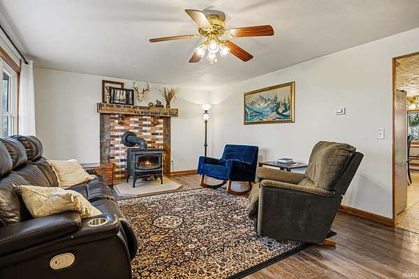 2.69 acres with wooded country setting outside city limits. 18x32 outbuilding for your hobbies, toys and equipment. Mature woods with a variety of fruit bearing trees. Spacious ranch home with 1446 SF above grade SF - 3 bedrooms and 2 full bathrooms. Open concept kitchen w/ stainless steel appliances. Custom hardwood cabinetry, granite counters, and large pantry. Cozy living room with wood burning stove. 20x15 finished 4-seasons room. Basement with family room and wood burning stove and plenty of storage. Newer metal roof and replacement vinyl windows. Well established garden in backyard. Partially fenced backyard. Move-in ready home where you can enjoy a peaceful country lifestyle. Generator hookup with transfer switch.