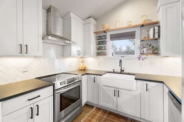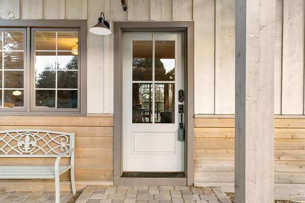 An adorable remodel with character to spare, this sweet and stylish farmhouse sits on a nearly two-acre corner lot in desirable Whispering Pines--just outside the bustle of town with room to breathe. A warm main living space, kitchen nook for dining, and spacious kitchen flow to a covered back porch perfect for soaking up the morning sun or enjoying sunset views. The well-designed layout includes a main-floor bedroom, half bath with laundry, plus an additional loft-style primary bedroom suite upstairs with an updated oversized bathroom. What truly sets this property apart is how well it supports modern living: the current owners created a detached 150 sq ft office/studio with electrical and lighting, offering true work-from-home separation, creative space, or a quiet retreat. Outside, you'll find multiple outbuildings--including a shed and loafing shed--along with tack/storage space and plenty of room for gear, hobbies, or animals. Full of charm and privacy, with space to spread out.