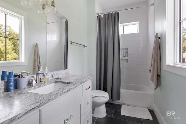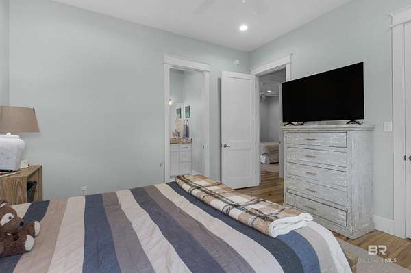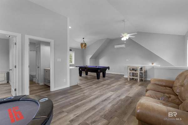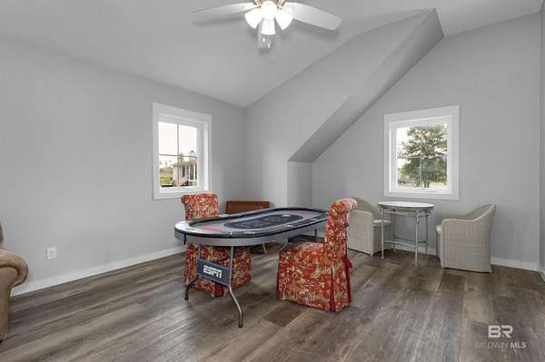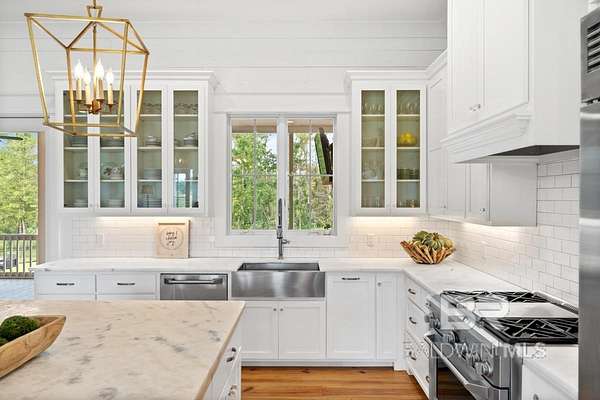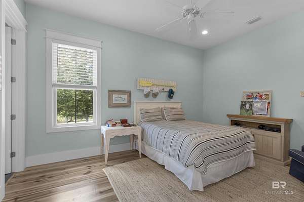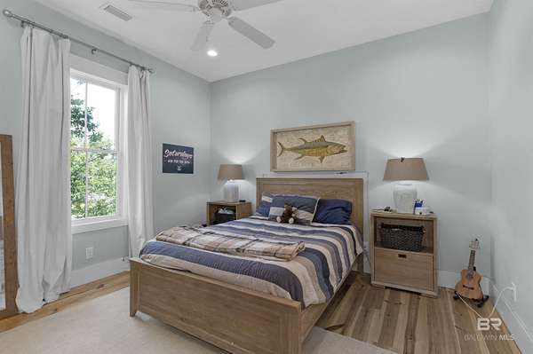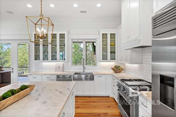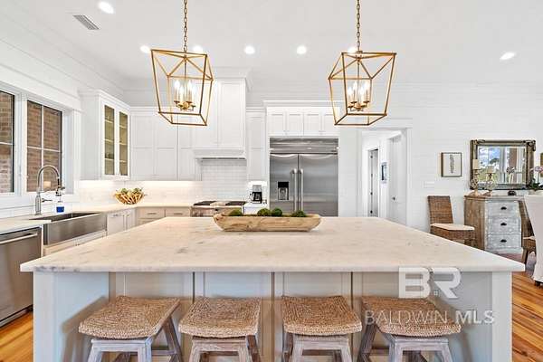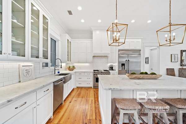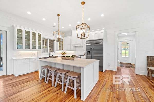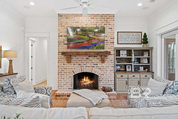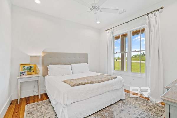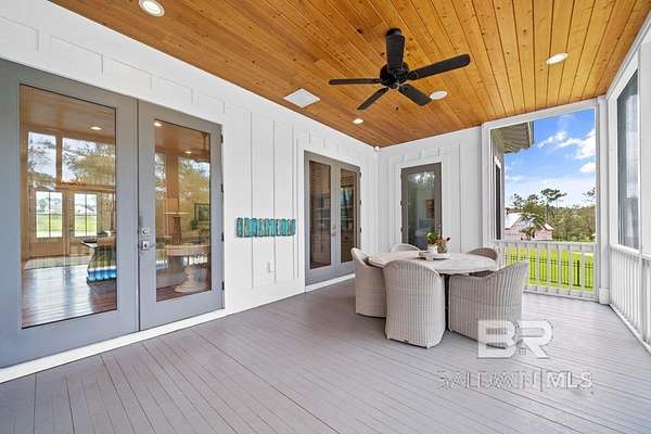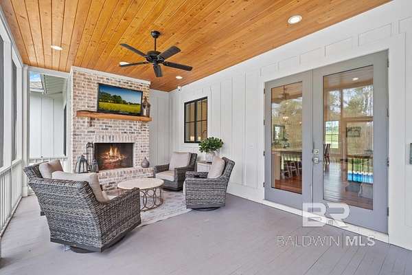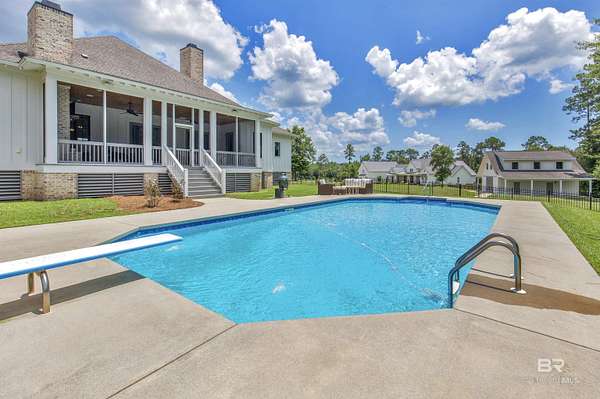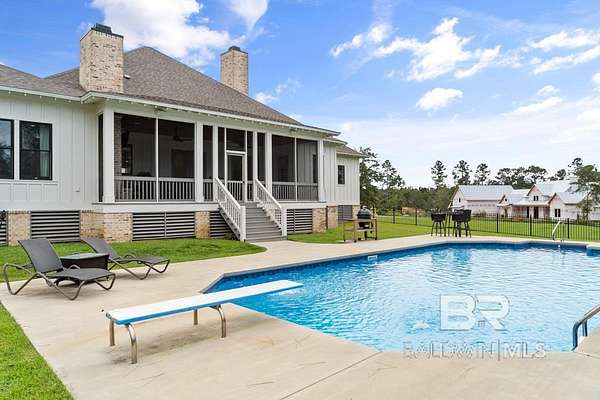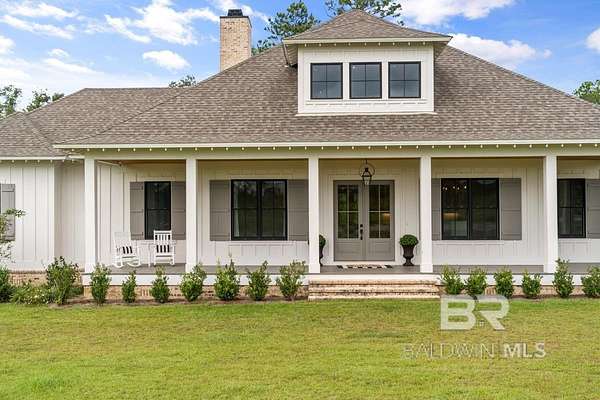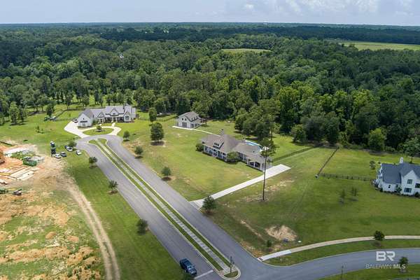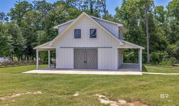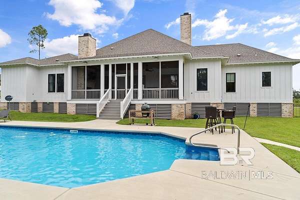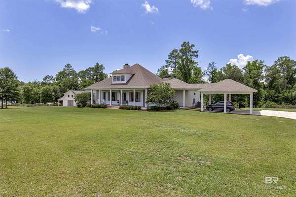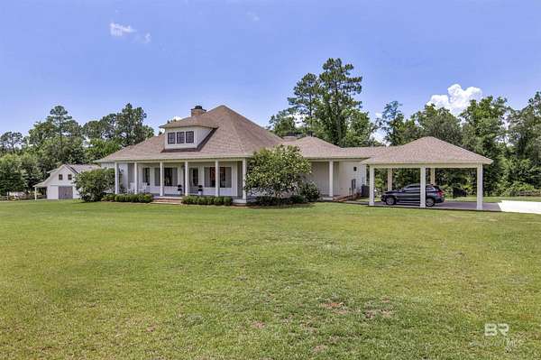 Tucked away in the peaceful community of Bridlewood Farms in Fairhope, this beautifully designed 5 bed/ 5.5 bath home sits on just under 5 acres and offers the perfect blend of elegance, comfort, and functionality. The open-concept floor plan features 11-foot ceilings throughout and seamless flow between the kitchen, dining, and living areas - perfect for everyday living or entertaining. The kitchen is a showpiece, complete with marble countertops, GE Monogram appliances, and an oversized island that's ideal for gathering with family and friends. Heart pine floors add warmth and timeless charm, while the living area centers around a wood-burning fireplace with a gas starter. Each bedroom has its own private en-suite, offering space and privacy for everyone. The primary suite is a luxurious retreat, with a spa-like bath featuring marble countertops and thoughtful finishes. A private office, tucked off the back deck, provides a quiet and functional workspace surrounded by nature. Outdoor living shines here, with a 20x40 swimming pool and an expansive back deck featuring a second wood-burning fireplace with gas starter - perfect for hosting guests or relaxing under the stars. There's also ample space for parking, making this property ideal for gatherings and entertaining. Adding even more versatility, the property includes a bardominium with a 1 bed/ 1 bath apartment offering 1,000 sqft of heated and cooled space - great for guests and/or extended family. Combining luxury finishes, open spaces, and peaceful surroundings, this Fairhope estate offers the best of refined country living just minutes from downtown Fairhope. Buyer to verify all information during due diligence.