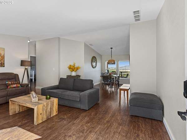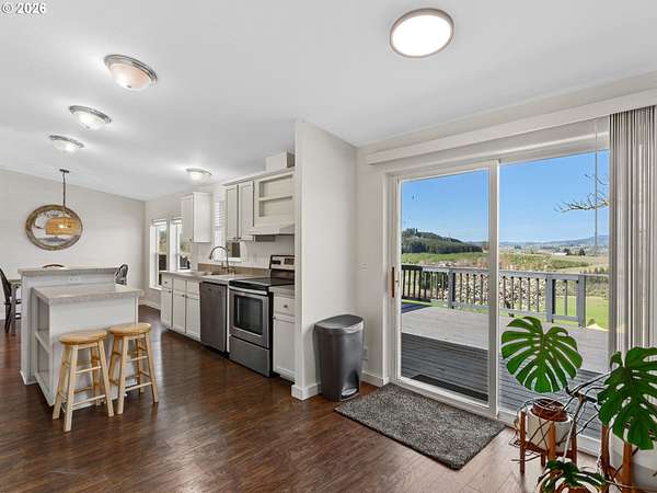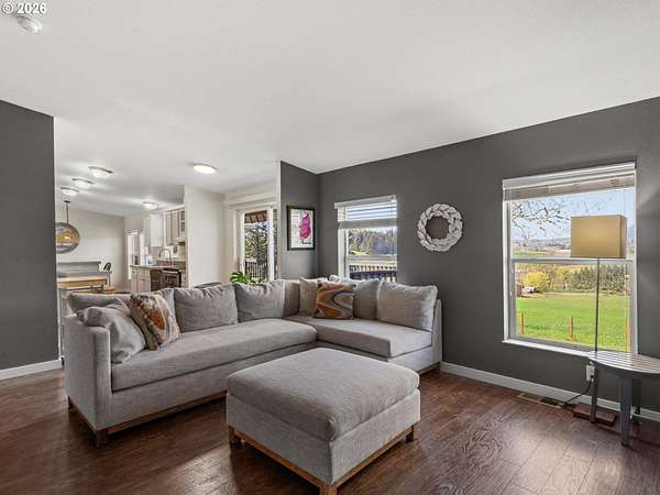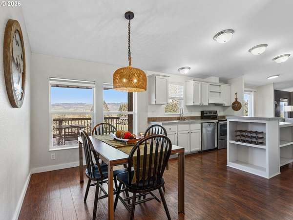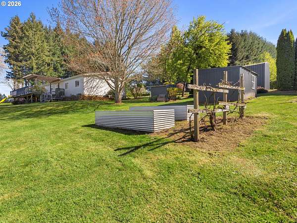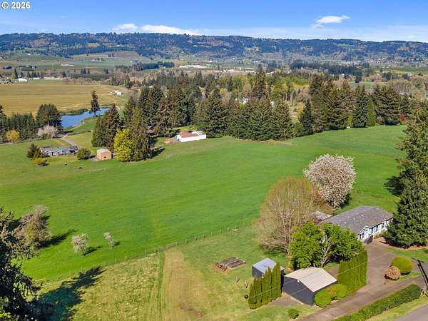 Sweeping views of the Willamette Valley, right in the heart of wine country! Beautifully maintained, light and bright, move-in ready manufactured home, designed tastefully with vaulted ceilings, designer paint colors, large living spaces, and stylish laminate flooring. Kitchen features island with ample counter space and wine rack, abundant over and undermount cabinetry for storage, stainless steel appliances, and window above kitchen sink, and opposite island, for peaceful views, while preparing meals and entertaining. Lots of gathering and relaxing space with both a living and family room, flooding in natural light. Living and dining room feature gorgeous views of the rolling hills, trees, and mountains. Primary bedroom with ensuite bathroom, boasting a large soaking tub, double sinks, walk-in, shower, and walk-in closet. This home has all of the benefits of living the country life, and the convenience of living just outside of town. Large shop, perfect for hobbies, storage, and 6.85 acres of Views, Views, Views! Enjoy morning coffee on the covered deck, while taking in 180 degree views of wine country and the Willamette valley. So much to do, with numerous wineries nearby, shopping, cafes, dining, and recreation, just a short drive from historic downtown Newberg! Don't miss this opportunity to enjoy a piece of everything Oregon wine country has to offer! Open Saturday, 4/18, from 11-1.