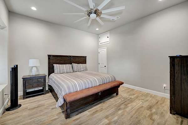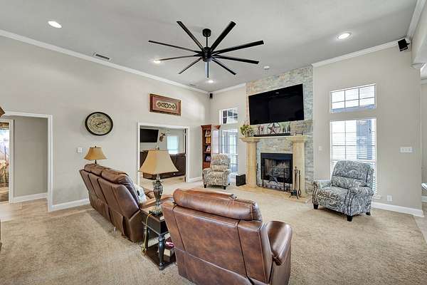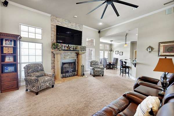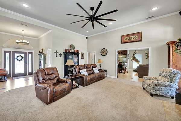 - Auto Garage Opener, Carpeting, Ceiling Fan(s), High Ceilings, Pantry, Smoke Detector(s), Tile Flooring