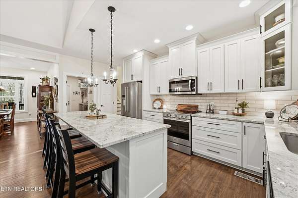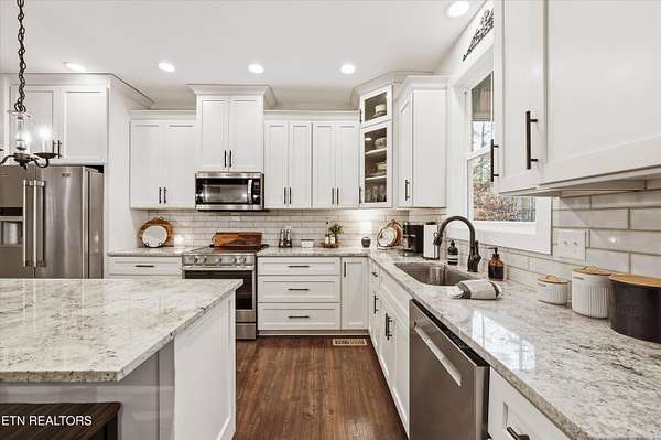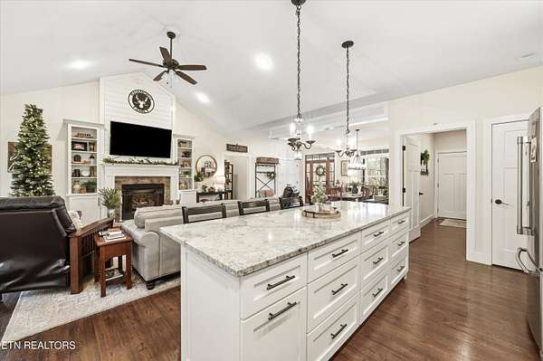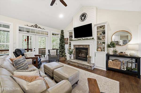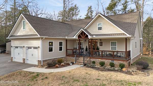Nestled on over two level acres just minutes from Pigeon Forge, this neat and tidy Craftsman-style retreat is turnkey and brimming with possibilities. The 3bedroom, 2bath home features a bonus room, a lightfilled living area with a soaring cathedral ceiling and gaslog fireplace, and a gourmet kitchen with granite countertops. All appliances convey, and furnishings are negotiable. Tile bathrooms with marbletop vanities, trey ceilings, upgraded lighting fixtures, and a minisplit in the bonus room add comfort and style, while the covered front and back porches boast durable Trex decking. A detached garage/carport offers plenty of storage, plus there's ample space to park an RV. Beyond serving as a primary or secondary residence, the property's prime location and layout make it an ideal candidate for conversion into an overnight rental. With proper approvals, the level acreage and existing 20foot easement off Green Pine Lane could even allow you to subdivide the land and build another cabin, creating additional income potential. Come explore this Smoky Mountains gem and imagine the possibilities!