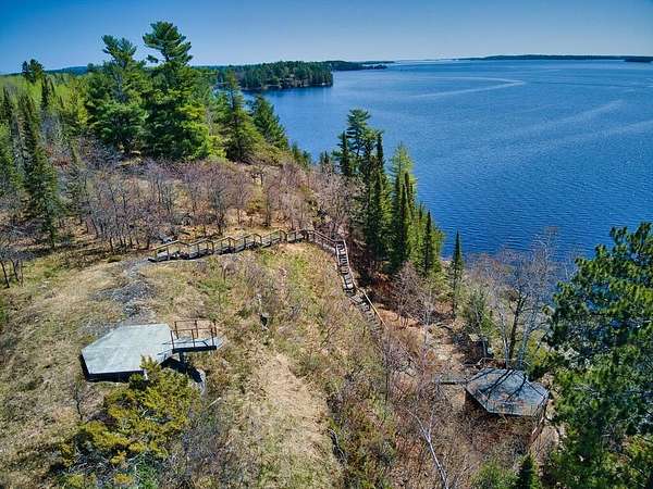 Rainy Lake island with a 20 mile view! 9.5 acres of commercially zoned property with 450' of Canadian Shield south facing shoreline. Currently the property features a 260 sq ft octagon tiny house complete with a full size deck, deluxe outside shower, and outhouse! There is 200 amp electrical service- so you can build the most magnificent house on the property's precipice where there is currently a lookout deck! This special property is adjacent to the former industrialist Bror Dahlberg's mansion (later Musket Inn) where Minnesota native Lewis Sinclair spent some summers writing and no doubt a little partying during the roaring 20's! Great history!!!! This property could also be a beacon for more tiny homes or a writer's retreat with a panoramic view of Voyageurs National Park!