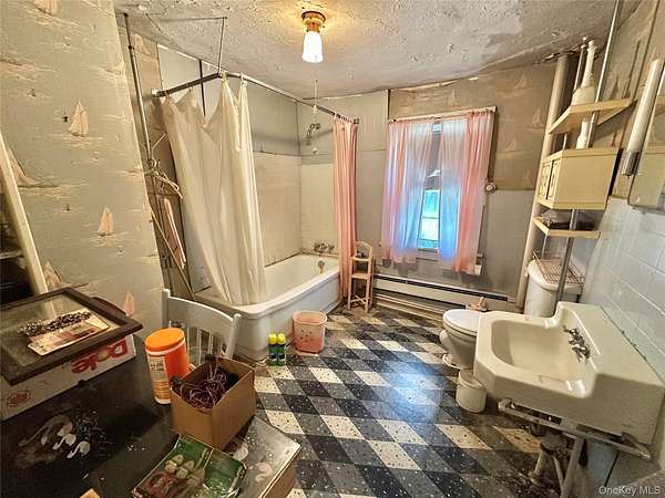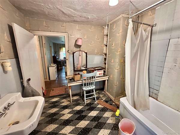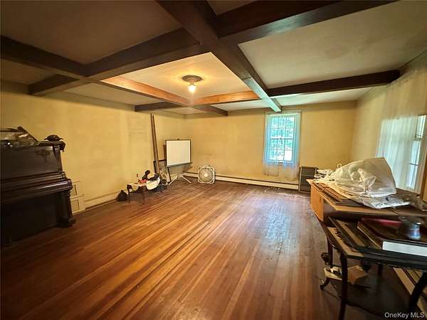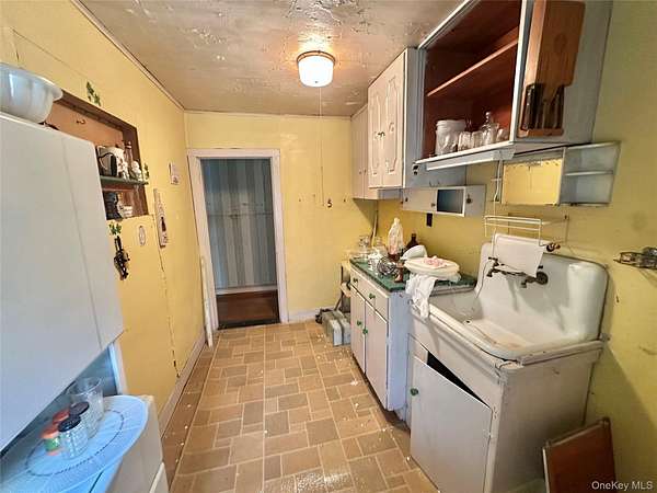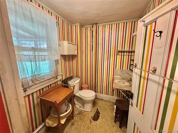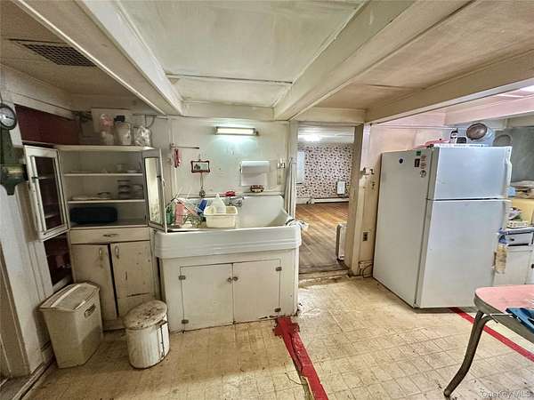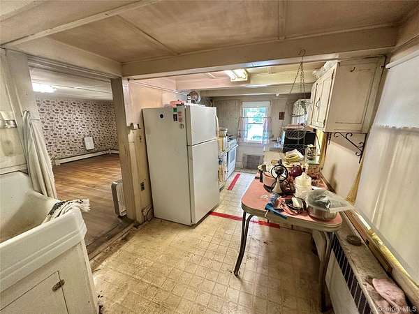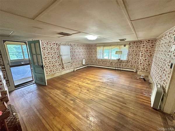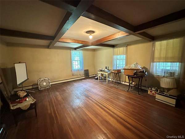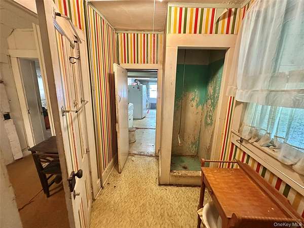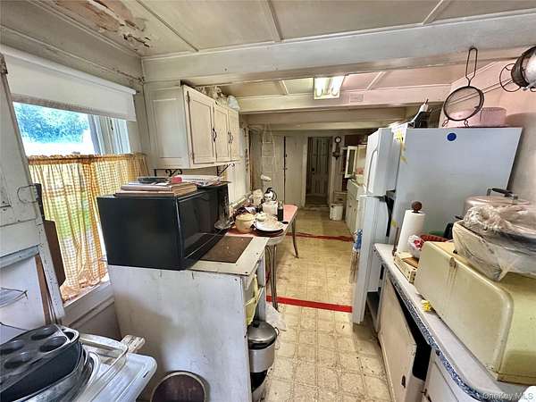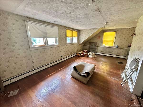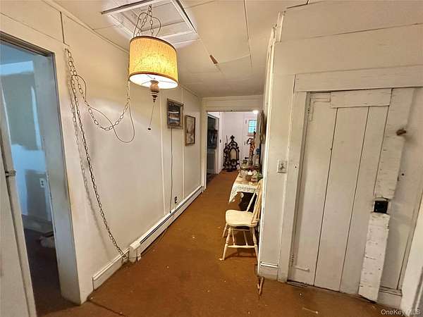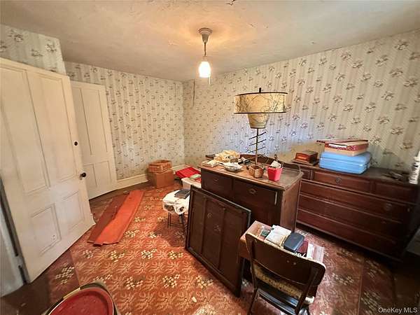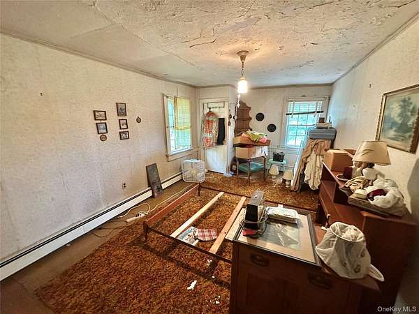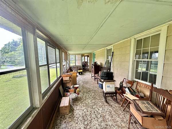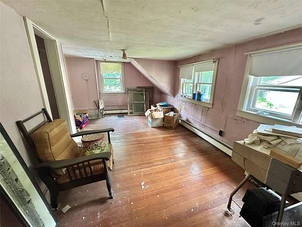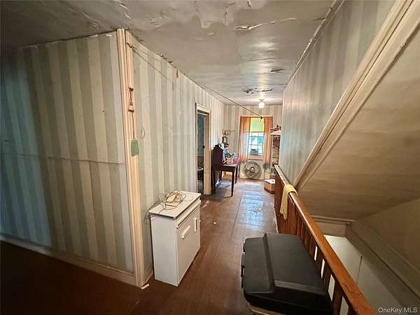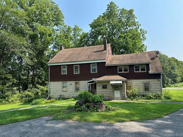 LARGE TWO STORY HOME AND COTTAGE ON FIVE ACRES/WALLKILL SCHOOLS - Looking for a project? This is the one! With the possibility of sub-division, this large parcel with home, cottage and two car detached garage with electric is perfect for someone with a vision. The main home features a kitchen, gigantic dining room perfect for gatherings and a living room adorned with wood beams. The main floor also features a full bathroom with walk-in shower as well as a convenient main-level bedroom. Upstairs you'll find five additional bedrooms, another full bathroom and a convenient summer kitchen. Plus there's a walk-up attic offering loads of storage space. This 1880's home is brimming with old-world charm. The property is surrounded by an abundance of mature trees, including majestic black walnuts, offering both privacy and natural beauty. With plenty of space for gardens and outdoor entertaining, it's the perfect spot to enjoy the outdoors. There are two enclosed porches on the front of the house, each filled with natural light, creating a bright and inviting space to relax. This home is in a fabulous commuter location with only minutes to I-84 and the Thruway and just 10 miles to the Newburgh/Beacon Bridge for easy access to the Metro North Train Station into NYC. Home is being sold AS-IS and is a CASH SALE only.