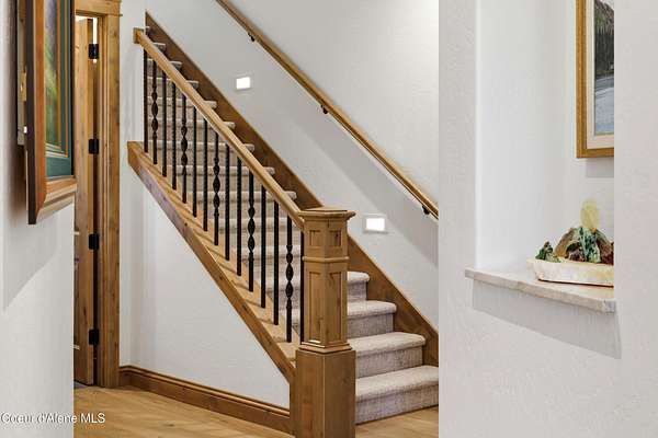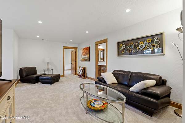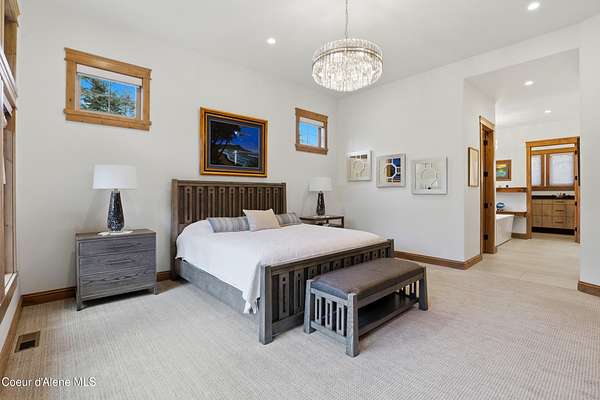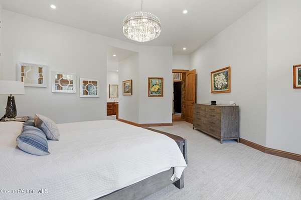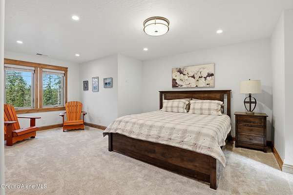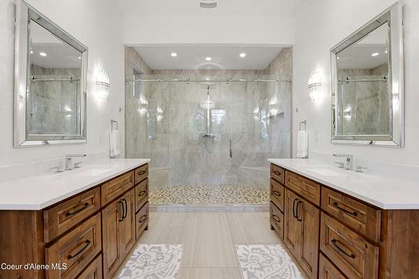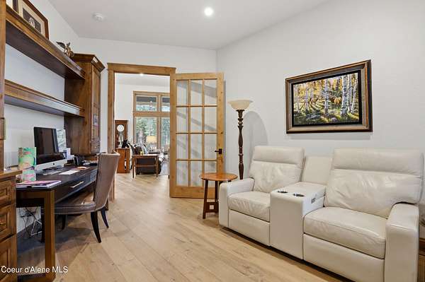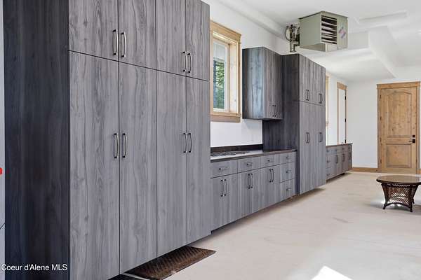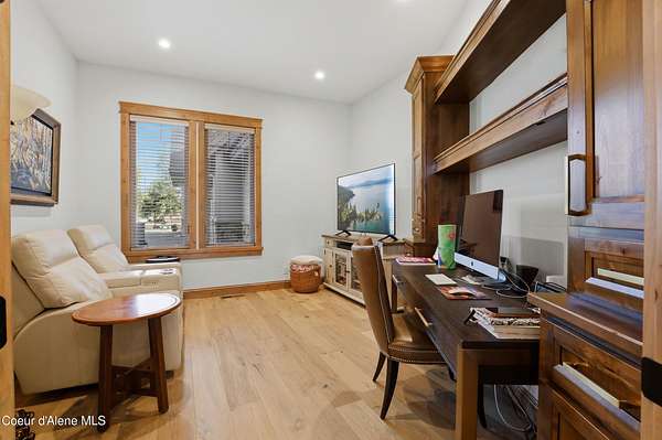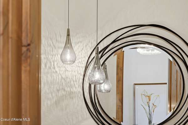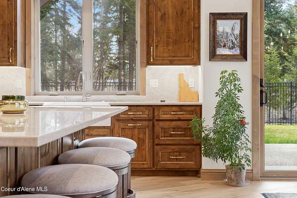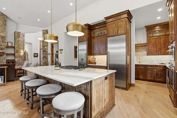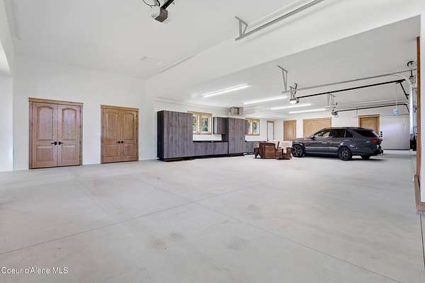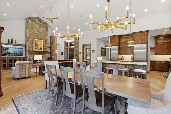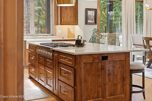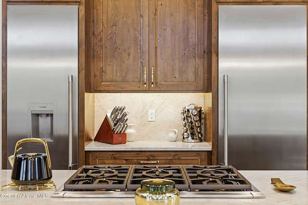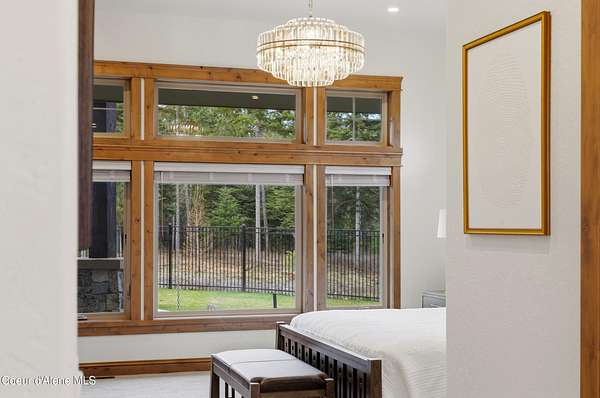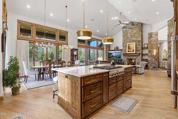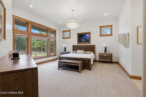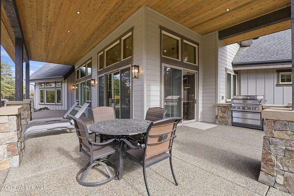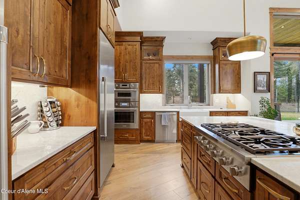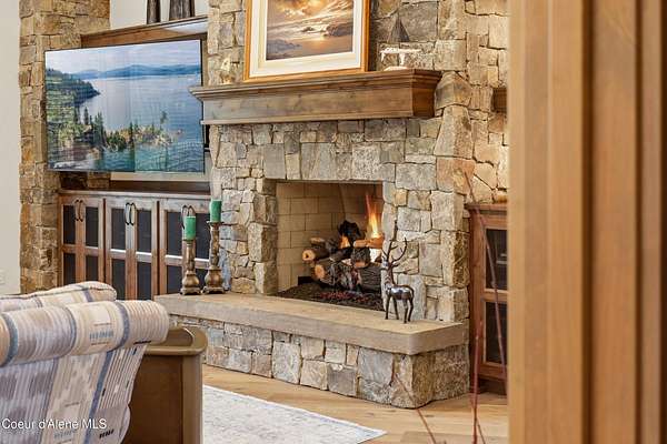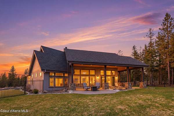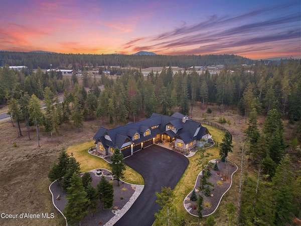 Welcome to The Glades, an exclusive Rathdrum community featuring luxury homes on private, treed 5-acre parcels offering peaceful North Idaho living just minutes from town. The Columbia, built by an award-winning builder, offers 3,765 sq ft with 4 bedrooms, 3.5 baths, and a private den. The open great room features a dramatic floor-to-ceiling natural rock fireplace, engineered hardwood floors, and expansive windows filling the home with natural light. The chef's kitchen includes custom cabinetry, oversized island, quartzite countertops, full quartzite backsplash, stainless appliances, and a walk-in butler's pantry. The main-level primary suite offers a soaking tub and large tile shower, while the upstairs suite with bedroom, bath, and living space is ideal for guests or multi-generational living. Exterior features include cedar accents, masonry finishes, covered porches and patios, landscaping with sprinklers, paved driveway, 3-car garage, and a 16' x 35' RV/workshop garage.