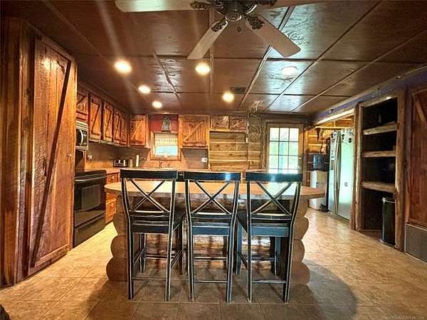 Welcome home to this quaint cabin on a wooded dead end. HORSE READY! This property has it all and at a great price, too! Ready to sell 10.5 MOL acre property with lighted arena, 6 stall barn, shop and cute cabin! 3 bed, 2 full bath log cabin home with a wrap around porch just waiting for you set your rocking chairs on and enjoy. Inside is a wood burning stove centered in the open concept living area, an oversized master suite with its own entrance and attached laundry. Across the living area are two spacious guest rooms and a full guest bath. Sitting behind the house is a very nice metal frame shed style barn that includes 6 pipe stalls each with their own pipe run, a spacious tack room, and a wide breezeway with extra space for storage. Just west of the barn is a lighted outdoor arena to work horses in with a perfect view from the covered porch. There is also a 3/10 mile training track in the back pasture. On the north side of the property is a large barn/workshop that is also being used as a garage with plenty of extra storage. A round pen just west of the workshop that is ready to be put to use. Also, has electric ran behind (south) the barn for a horse walker connection. This property is fully fenced and partially wooded. It boasts 2 ponds and a live creek with easy access. The home is in need of a a little TLC and a few updates so price reflects this. Get it before the seller does them and the price goes up. This property is ready for you to make it your own! Check it out today! You'll love the layout, convenience, and privacy this property has to offer.
