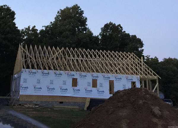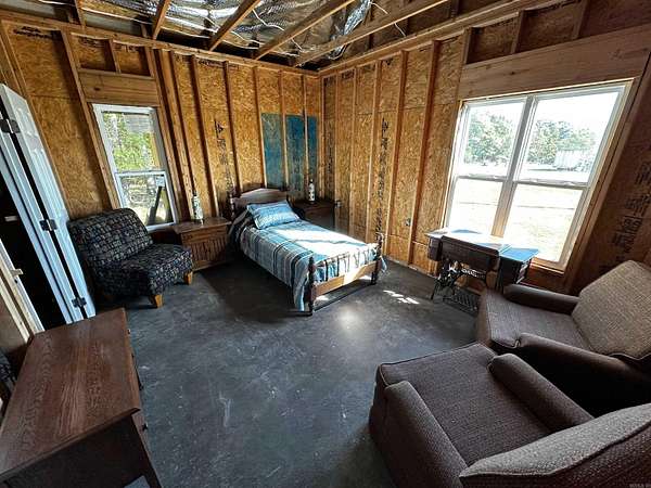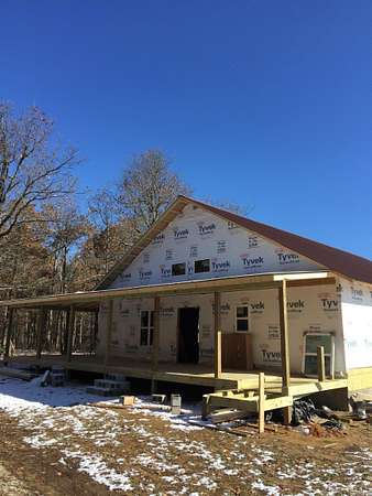 NO 25010: Opportunity awaits with this 1,802 sq ft unfinished home on 11.33 beautiful acres in the heart of the Ozarks. With 9-foot ceilings and Hardie plank siding already installed, this property provides a solid foundation and a blank canvas to complete to your taste. Materials to finish portions of the build are included, giving you a jump start toward your dream retreat. Enjoy 945 sq ft of open porches, a 211 sq ft screened porch, and ample outdoor space for relaxing or entertaining. The property offers city water, solar panels, two septic tanks, and two RV hookups--perfect for hosting guests or tapping into rental potential. One RV will convey with the property. A 22x24 shop and an open storage building supply room for tools, equipment, or projects. With county road frontage and a tranquil, private setting, you get the best of convenience and seclusion. Complete the home to fit your vision--whether as a full-time residence, weekend escape, or investment. Priced to reflect the unfinished status, this is your chance to own a slice of Arkansas.