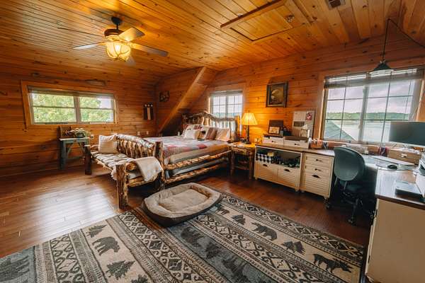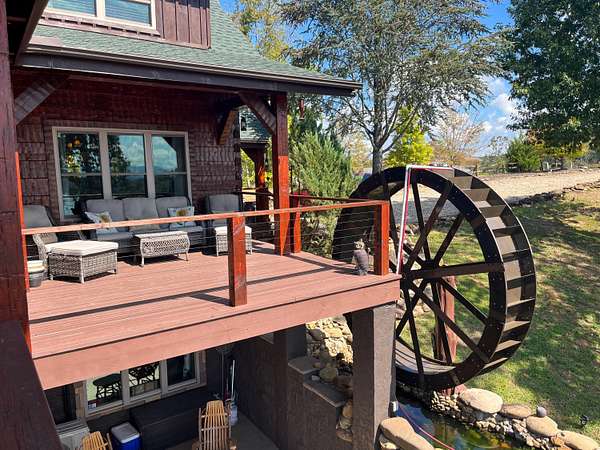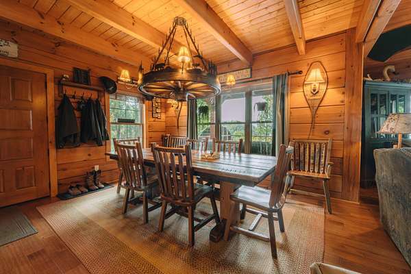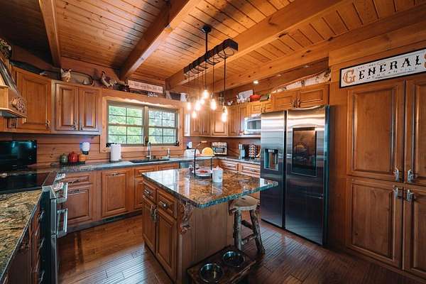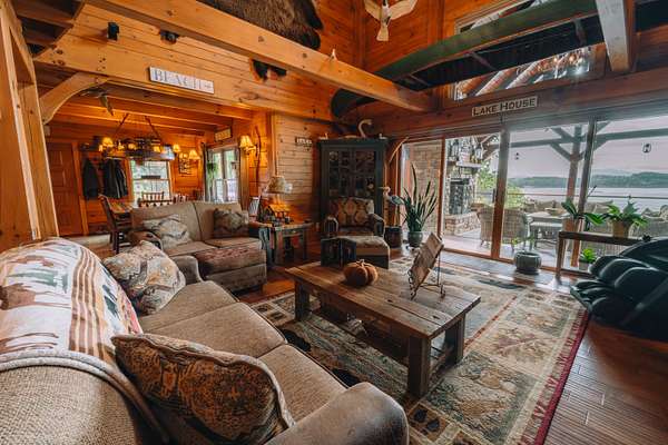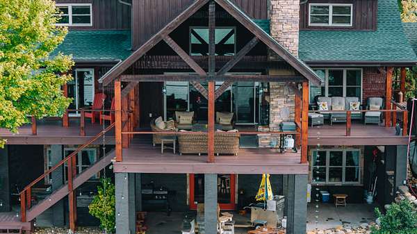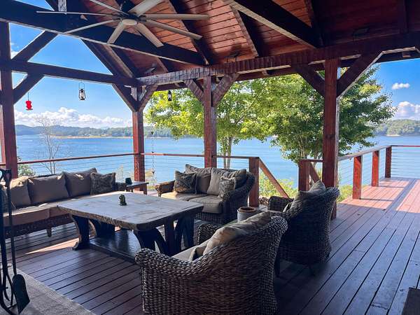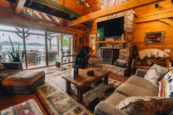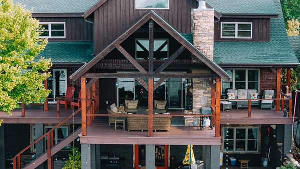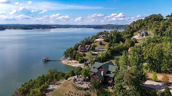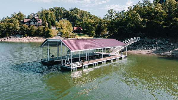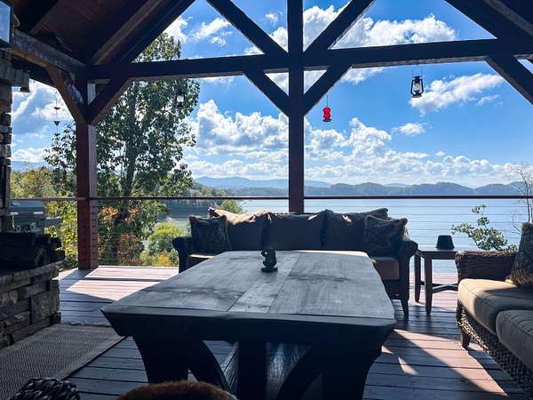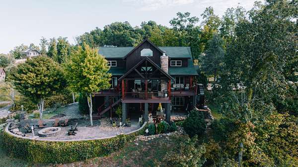 Luxury Timber Frame Log Cabin with Unbelievable Entertainment Basement! Nestled on the serene shores of Douglas Lake in Dandridge, Tennessee, this exquisite 3-bedroom, 5-bathroom timber frame log cabin offers unparalleled luxury and breathtaking views of the Great Smoky Mountains. Designed for those who crave sophistication, tranquility, and world-class entertaining, this dockable waterfront retreat is a masterpiece of craftsmanship and modern amenities, enhanced by extensive recent upgrades. Step inside to a warm, open-concept interior with soaring ceilings, hand-hewn timbers, and expansive windows showcasing stunning main channel lake views. The entire home has been freshly stained, highlighting its timeless log cabin charm. The gourmet kitchen, now featuring a brand-new GE Cafe Range and custom cabinetry, flows seamlessly into the spacious living area, perfect for cozy evenings by the stone fireplace. Each of the three generously sized bedrooms features en-suite bathrooms, with the master suite boasting a newly installed large slider for seamless lake views, an improved luxurious shower, and a fully renovated master closet for ultimate convenience and style. The lower level is an entertainer's paradise, boasting an unbelievable custom basement designed for unforgettable gatherings. At its heart is a massive, professionally crafted bar area, complete with ample seating, sleek countertops, and space for hosting lively parties and events. This extraordinary basement also includes a state-of-the-art movie theater with newly upgraded theater equipment, perfect for immersive movie nights or game-day watch parties. Climate control is ensured year-round with new air conditioners installed for both the top and bottom levels, providing comfort in every season. Step outside to the expansive back porch and lower deck, now featuring new porch posts and railings, where you can unwind while soaking in panoramic lake and mountain views. The meticulously improved landscaping, complete with a charming waterwheel,, enhances the beauty and privacy of the grounds. A newly added expansive boat dock provides direct access to Douglas Lake for boating, fishing, or enjoying the water, while a new roof on the home ensures lasting durability. Additional modern upgrades include an EV charger in the driveway for eco-conscious convenience and a newly installed security system that can be remotely controlled and monitored from your cell phone. This upscale retreat blends rustic charm with modern luxury, making it the perfect primary residence, vacation home, or investment property. The owners have invested in numerous high-end improvements, ensuring this home is move-in ready and built to impress. Don't miss your chance to own this one-of-a-kind lakefront gem in the heart of Tennessee's natural beauty. Schedule your private tour today!