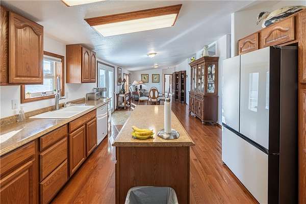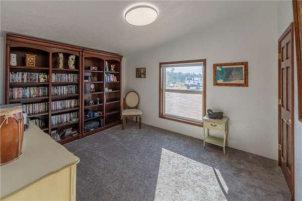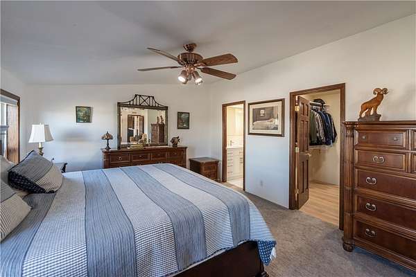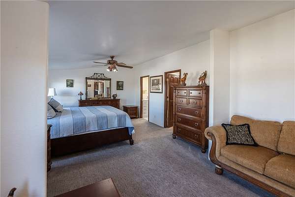 Nicely maintained 4 bed/2 bath home with separate guest quarters and 40 x 60 steel framed shop. This 2.29 acres of horse property borders government land and offers privacy along with spectacular views. Property is equipped with 4 covered horse stalls, round ring, and tack shed. The 2052 sq ft home has a large kitchen with lots of cabinets and an island perfect for food prep. The kitchen opens to the casual dining room and two living room areas with plenty of room for entertaining. An adjacent laundry room comes complete with washer/dryer and additional shelving. A large primary bedroom has a relaxing sitting area and a remodeled walk-in closet with new luxury vinyl plank flooring. Primary bathroom has also been remodeled with new walk-in shower, new double vanity with quartz counter tops, and new flooring. The 3 guest rooms are all good-sized with big closets. One is currently being used as an office and all have easy access to the full guest bath. There is a new heat pump with ducting system installed. Beautiful wood floors are in the kitchen and dining area with new upgraded carpeting in bedrooms and living room areas. The 400 sq ft separate guest quarters with a covered front porch has a newly installed mini split system and can be used to house guests or as a hobby/craft room. The enormous 2400 sq ft steel framed shop is stubbed for water and septic. There are 2 welding hook-ups and built-in work benches with shelves and loft area for extra storage. Shop comes complete with 9000 lb 2 post lift and 60-gal Ingersoll Rand air compressor. The 14ft doors make it easy to park an RV or other toys inside. Enjoy the scenic tranquility and the many off road trails easily accessible from this unique property.