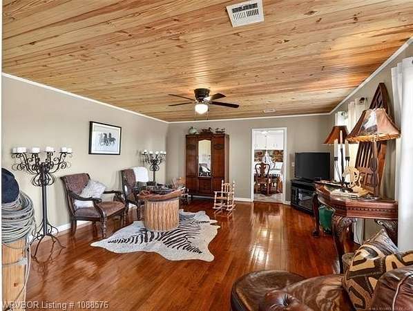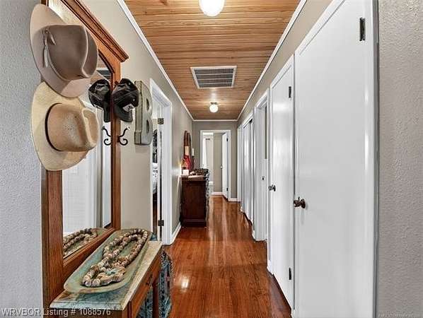 The Cowboy Way - Keota, Oklahoma - 112 acre ranch and very quaint western home. Home is 3 bdrm/2 bath home with true hardwood floors, some wood ceilings, huge office and beautiful views. The home is pristine and has the special cowboy/cowgirl touch. The yard is simply amazing with paths, sitting areas, waterfall, and beautifully landscaped. Pastureland is split into 3 pastures with ponds, older barn and a small creek. This land has been in the family for over 60 years and has always ran cattle, has hay meadows, ponds for animal drinking and also fishing. Beautiful property to run your cattle, ride horses, cut hay, family gatherings and so much more. Within 2 miles of the Arkansas River.