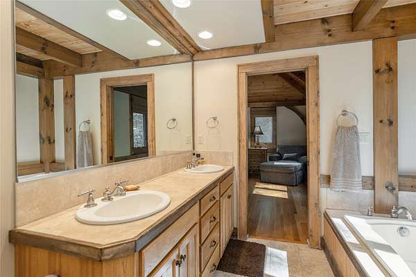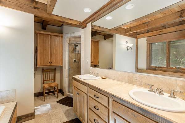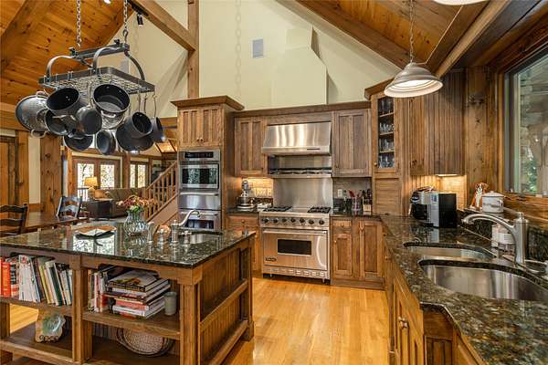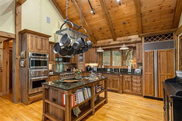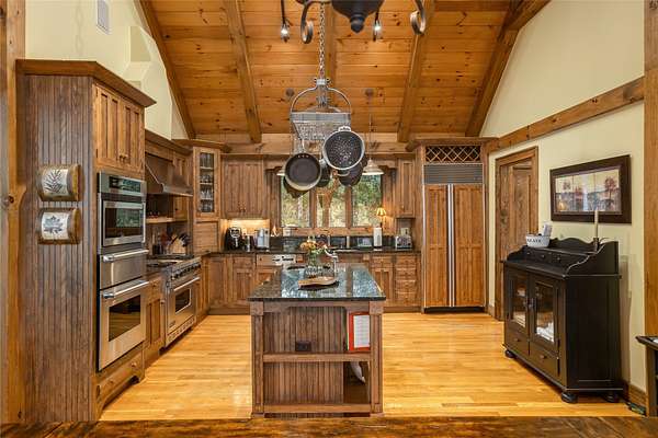 - Beamed Ceilings, Ceiling Fans, Chandelier, Double Vanity, Entrance Foyer, High Ceilings, Kitchen Island, Vaulted Ceilings, Walk In Closets, Wet Bar
