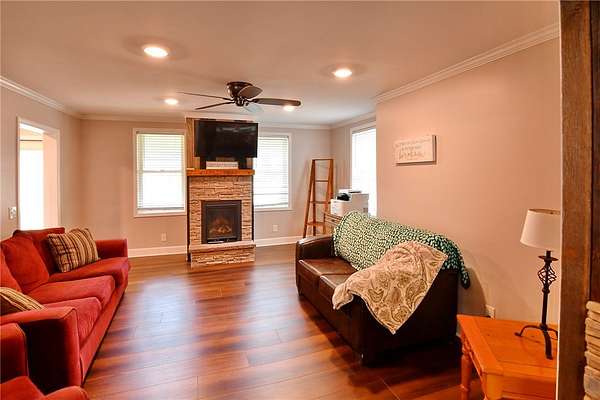 - Bedroom On Main Level, Cathedral Ceilings, Ceiling Fans, Country Kitchen, Den, Great Room, Home Office, In Law Floorplan, Kitchen Island, Main Level Primary, Natural Woodwork, Primary Suite, Separate Formal Living Room, Sliding Glass Doors