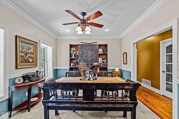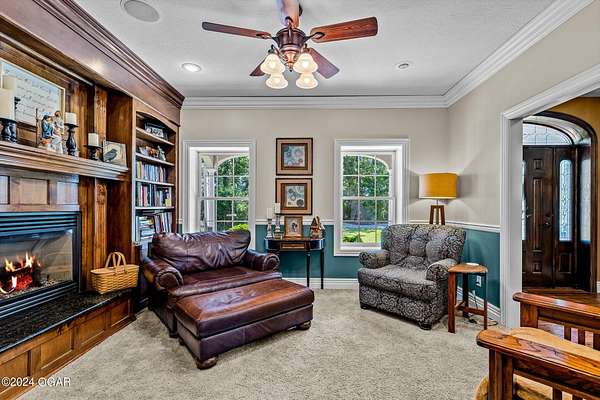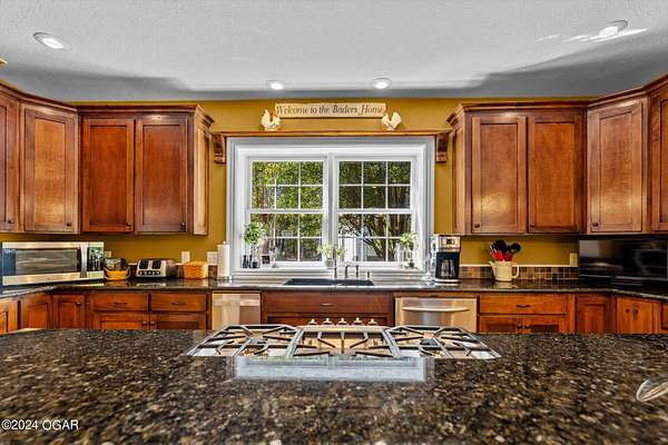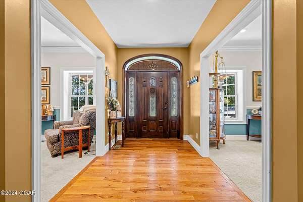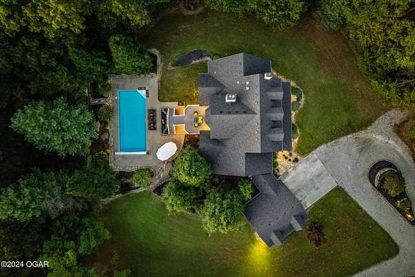 Rarely does an opportunity of this caliber present itself. Introducing a remarkable 6,200+ square foot estate that has never before graced the real estate market- a true hidden gem nestled on an expansive 145- acre private sanctuary in the heart of the Ozarks. From the moment you arrive on the tear shaped drive, you'll be captivated by the thoughtful design and stunning landscaping that sets this home apart from every other property in the region. This residence was built with insulated concrete forms (ICF), making it ideal for longevity, energy efficiency and provides more protection from disasters like tornados. The whole property was meticulously crafted with the highest-grade materials including hand-scraped hardwood floors, custom cabinetry throughout, gas range for culinary enthusiasts, granite counter tops, tilt-in Anderson windows, and abundant storage throughout. The basement retreat features a family gym for fitness enthusiasts, an elegant wet bar for entertaining, a spacious family room and a dedicated craft room for creativity and projects. The outdoor living oasis features an in-ground pool with heater and automatic pool cover, perfect for extended recreation and entertainment in the cooler months. This productive land is actively used for livestock agriculture and features a ponds, a spring, plus an additional barn. A rental property also included with the purchase of this estate. This isn't just a home; it's a complete lifestyle investment that seamlessly blends luxurious living, agricultural potential, and income generating opportunities. Call your favorite agent to see your future hidden sanctuary! Proof of funds needed to show.