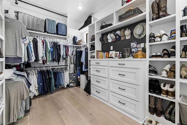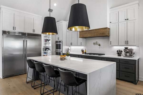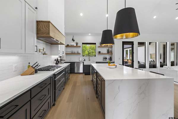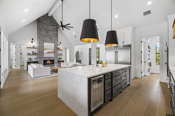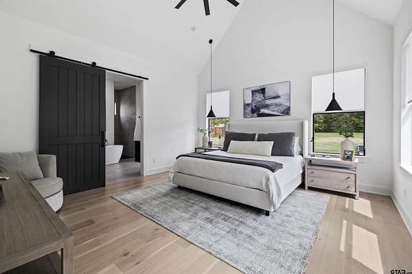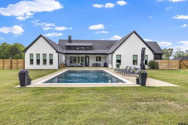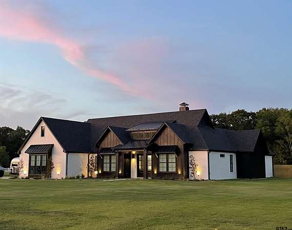 This stunning 4-bedroom, 3-bath home offers a spacious, thoughtfully designed layout with versatile bonus spaces ideal for entertaining, a home office, or flexible living. From the moment you step inside, you’re greeted by soaring vaulted ceilings, abundant natural light, and elegant finishes throughout. Designer details include custom cabinetry, high-end fixtures, and dimmable lighting that create the perfect ambiance in every room. The open-concept living area flows seamlessly into a chef’s dream kitchen featuring commercial-grade appliances, an oversized refrigerator, and double ovens—perfect for hosting gatherings of any size. A split floor plan provides a private owner’s suite retreat, separate from guest bedrooms for maximum comfort and privacy. Upstairs attic access offers excellent storage and an exciting opportunity for conversion into additional living space or a bonus room. Situated on nearly 6 acres, this property boasts the largest lot in the highly desirable Blue Ridge Estates and showcases peaceful water views of Lake Palestine. Outdoor amenities are equally impressive, including a spacious back porch ideal for entertaining and a beautiful in-ground heated pool for year-round enjoyment. The long, wide driveway allows for ample parking, making hosting effortless, while the additional acreage provides space for recreation and guests. Two additional adjacent lots are also available for purchase, offering approximately 3 extra acres—perfect for expanding your estate or enhancing privacy. Adding to its charm, this is the only property in the neighborhood permitted to have chickens, enhancing its serene country feel. Located minutes from the marina and within sought-after Bullard ISD, this home offers convenient access to Tyler while maintaining peaceful privacy.