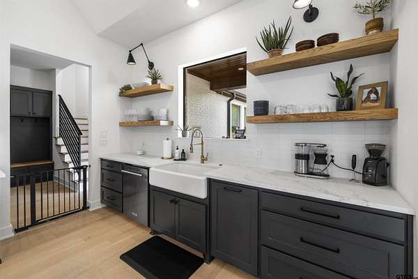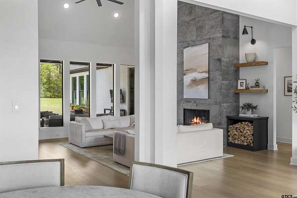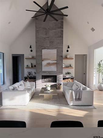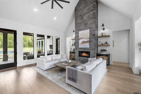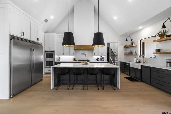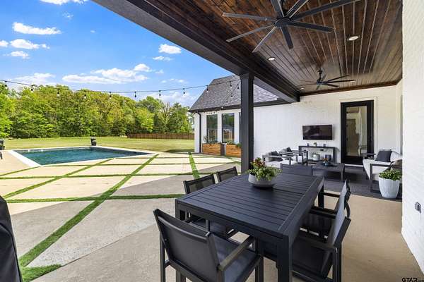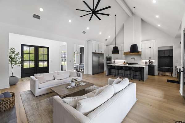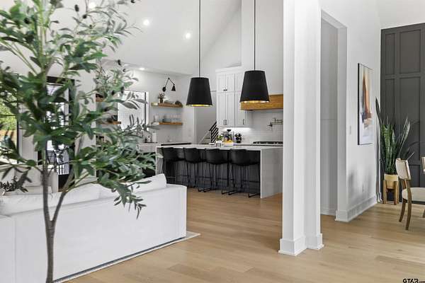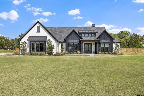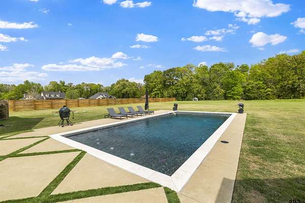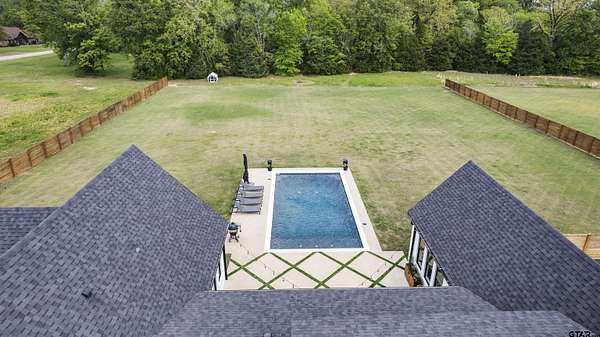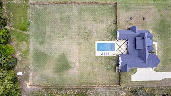 This stunning 4-bedroom, 3-bath home features a spacious and thoughtfully designed layout, complete with additional bonus spaces perfect for entertaining, a home office, or flex use. From the moment you step inside, you’ll be captivated by the soaring vaulted ceilings, abundant natural light, and elegant finishes throughout. Designer touches include custom cabinetry, high-end fixtures, and dimmable lighting to create the perfect ambiance in every room. The heart of the home is the open-concept living area, seamlessly connecting to a chef’s dream kitchen outfitted with commercial-grade appliances, including an oversized refrigerator and double ovens—ideal for hosting gatherings of any size. The split floor plan offers a private owner’s suite retreat, separate from the guest bedrooms for maximum comfort and privacy. Upstairs attic access provides excellent storage and presents an exciting opportunity to easily convert into additional living space or a bonus room. Situated on nearly 6 acres, this property boasts the largest lot in the highly sought-after Blue Ridge Estates and offers peaceful water views of Lake Palestine. The outdoor amenities are just as impressive, featuring a spacious back porch perfect for entertaining and a stunning in-ground heated pool for year-round enjoyment. The long, wide driveway accommodates ample parking, making it ideal for hosting events, while the additional acreage provides even more space for guests and recreational use. Adding to its unique charm, this is the only property in the neighborhood permitted to have chickens, and a few currently roam the backyard, enhancing the home's serene, country feel. Minutes from the marina. Located within the highly desirable Bullard ISD and conveniently positioned between Bullard and Flint, this home offers easy access to Tyler while maintaining a peaceful, private setting. This one-of-a-kind estate truly has it all—space, luxury, and location. Don’t miss your chance to experience it in person!