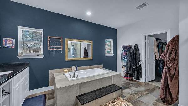 The primary suite offers privacy and comfort with a spa-style bath and oversized walk-in closet. Two additional bedrooms, plus a dedicated office, provide flexibility for guests, work-from-home, or growing needs.