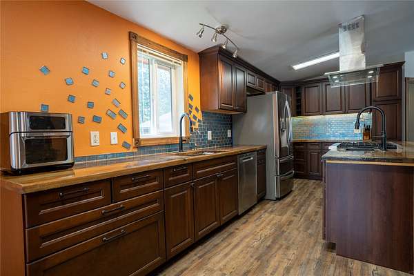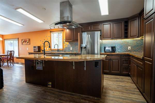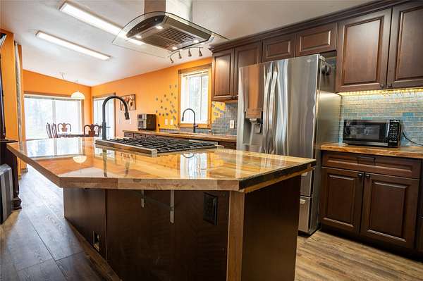 Remodeled inside and out with thoughtful ADA features, this 3-bedroom, 2-bath home on 2.49 acres perfectly blends modern comfort with Montana freedom. Updates include roof, siding, flooring, kitchen, bathrooms, porch, and stylish finishes throughout. Heated by electric forced air or a wood-fired boiler, plus a new 10KW Generac generator for backup power. Exterior highlights include a heated ADA-compliant sidewalk, carport, two storage sheds, a 30x40 insulated and heated shop with 220 power, full RV hookup, and a nearly finished greenhouse with materials included to complete the build. The property has shared well access (30 GPM) plus a newly drilled well ready for a pump. Split firewood and a log splitter are also included. No HOA, no covenants, and not zoned-just peaceful privacy minutes from Flathead National Forest and 30 miles from Glacier National Park. Functional, move-in ready, and designed to enjoy the Montana lifestyle.