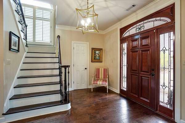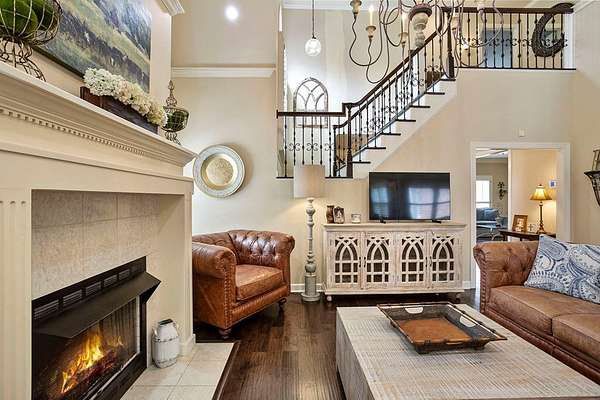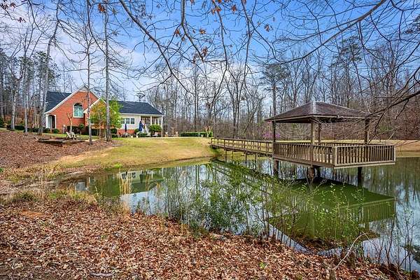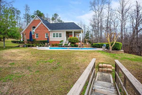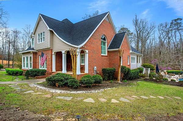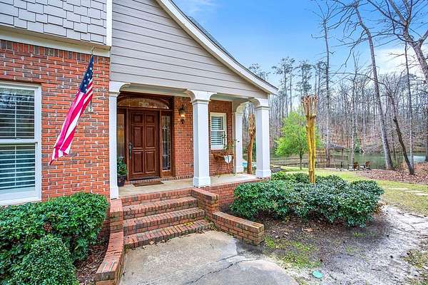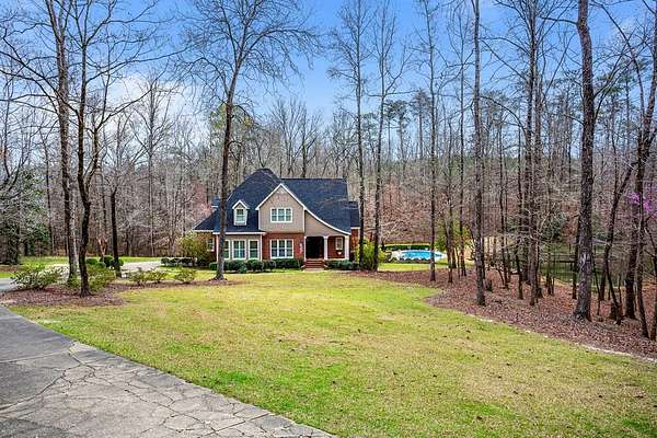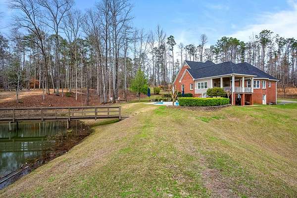 Welcome to an extraordinary Southern Living-inspired estate set on approximately 13 pristine acres just minutes from historic downtown Eufaula. Designed for refined country living, this exceptional property combines timeless architecture, modern comfort, and breathtaking natural surroundings. This home immediately impresses with its grand foyer and sweeping staircase, setting the tone for the elegance found throughout. Rich hardwood floors flow through the main living spaces, including a formal living room, private office, and sophisticated dining room, creating ideal spaces for both everyday living and elegant entertaining. At the heart of the home, the open-concept family room features a warm gas fireplace and seamlessly connects to the dining area and gourmet kitchen. The chef's kitchen is beautifully appointed with granite countertops, stainless steel appliances, double ovens, and abundant cabinetry. The main-level owner's suite is a true retreat, featuring a luxurious spa-inspired bath complete with a tiled walk-in shower, soaking tub, and double vanity. Upstairs, three additional bedrooms, two full bathrooms, and a welcoming sitting area provide generous accommodations for family and guests. Designed to embrace the beauty of the surrounding landscape, the home offers exceptional outdoor living. A covered back porch overlooks the private pond and saltwater pool. Experience the beauty and serenity of this exceptional estate - schedule your private showing today.