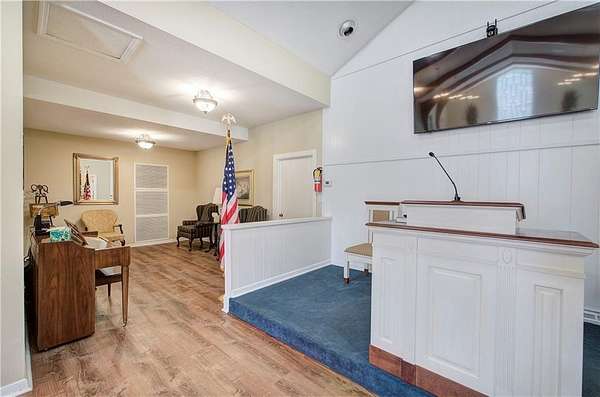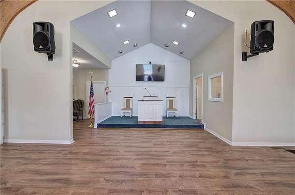 - Beamed Ceilings, High Ceilings 10 or Greater, Reception Area, Restrooms, Track Lighting